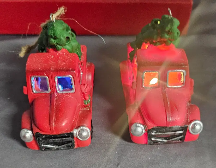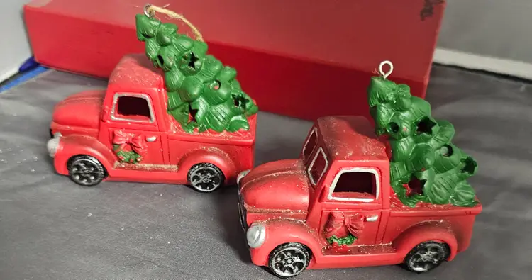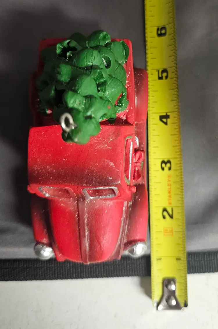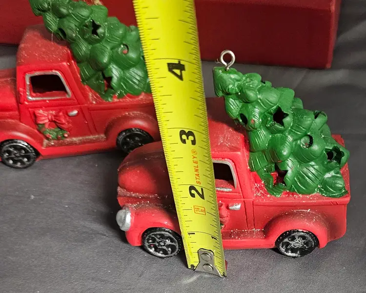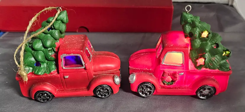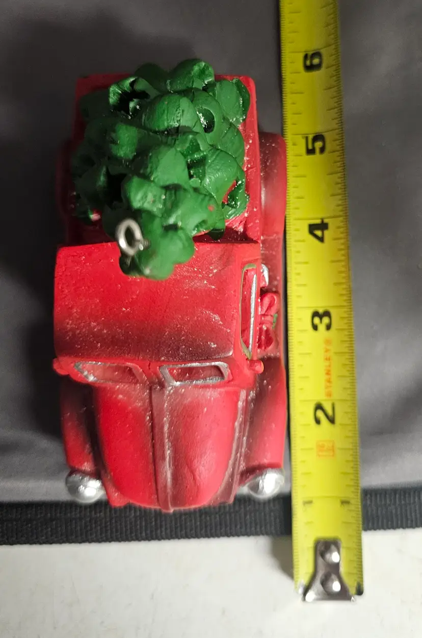 This vintage red truck figurine is decorated with Christmas tree ornaments, creating a festive holiday atmosphere. The small size and red color make it a charming addition to any Christmas decor collection. Made of plastic, this figurine is durable enough to be used year after year. Each lighted truck comes with working batteries included, ensuring it will illuminate your home during the holiday season.