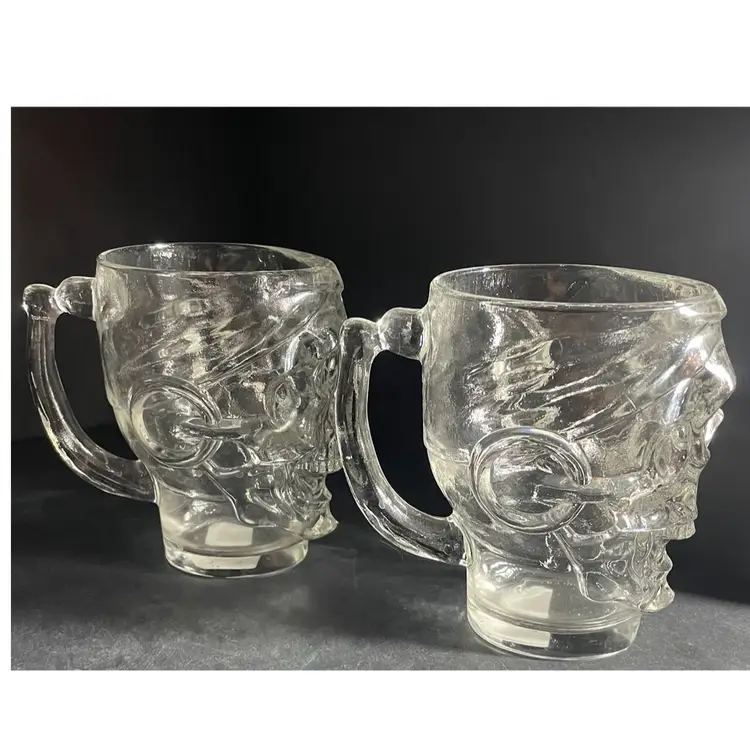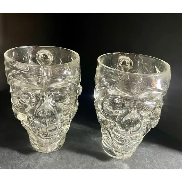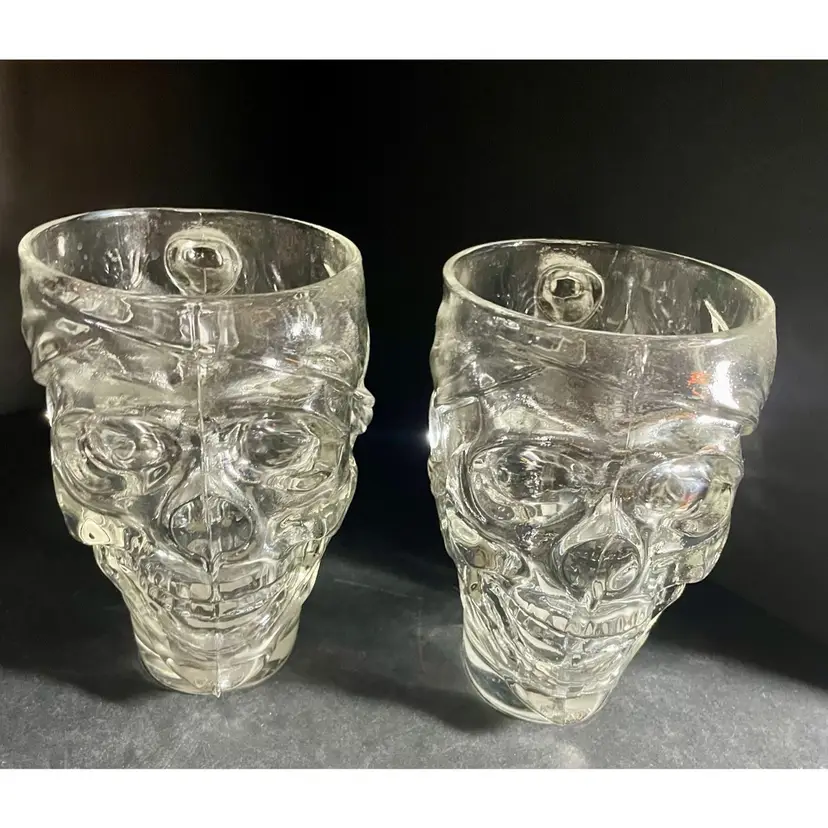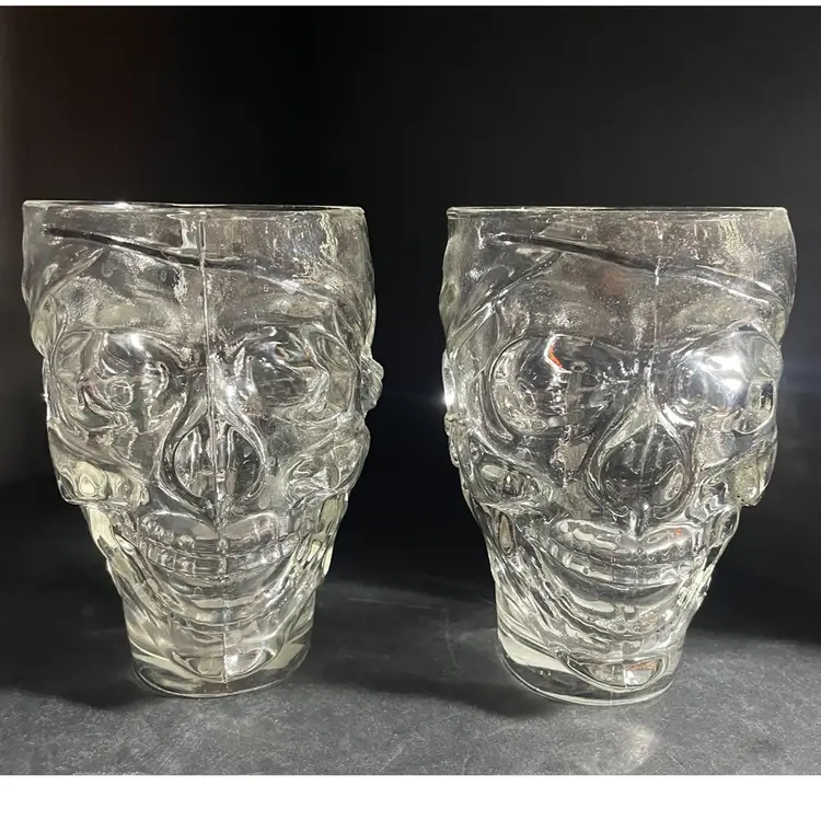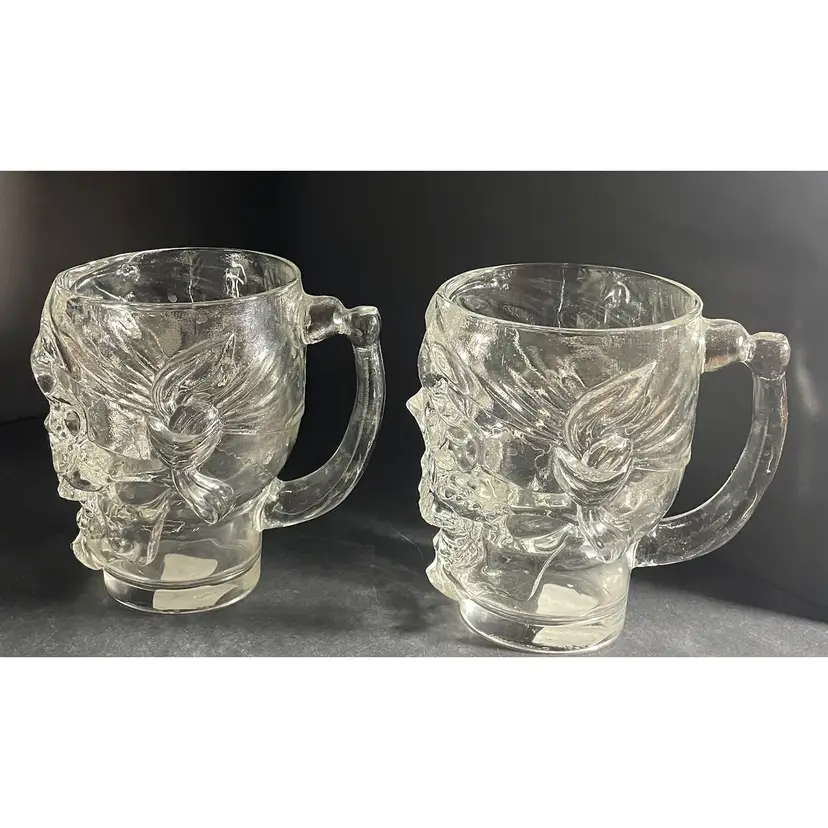 2 Luminarc 32 oz Glass Skull Mugs. Condition is Used. Shipped with USPS Mail
