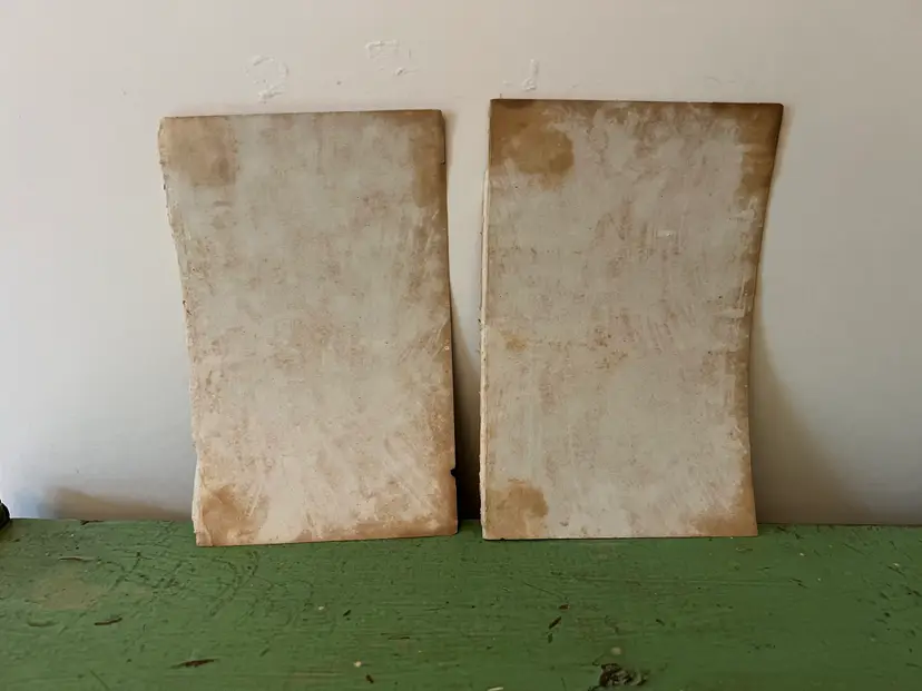 Each sheet is marbled on one side and blank on the reverse. (off white) Good condition especially for the age. Aging as expected.