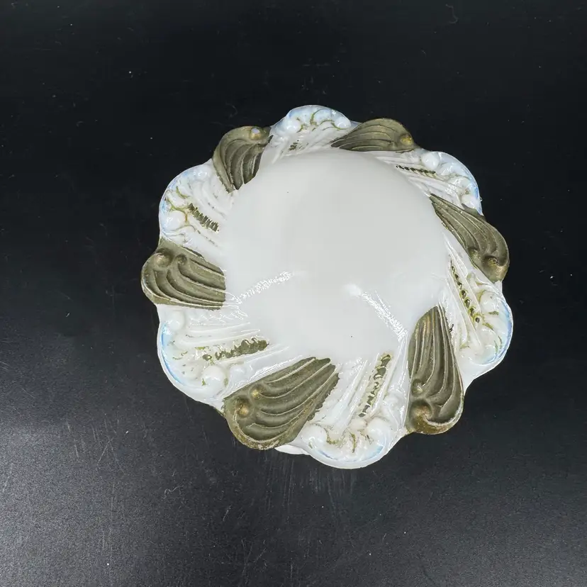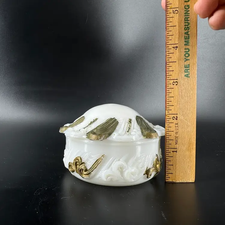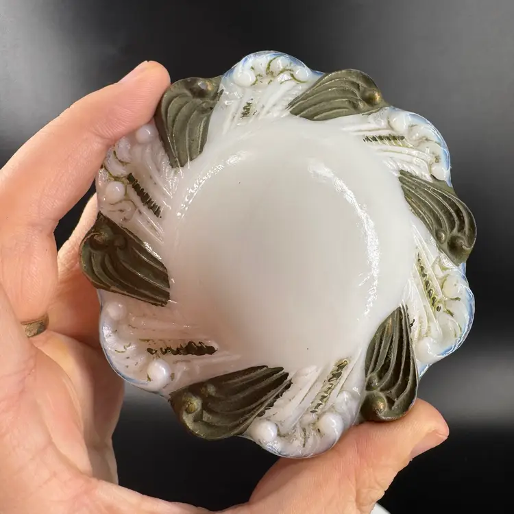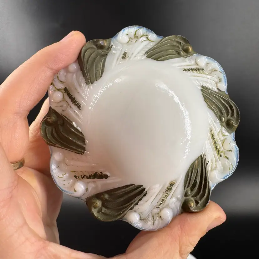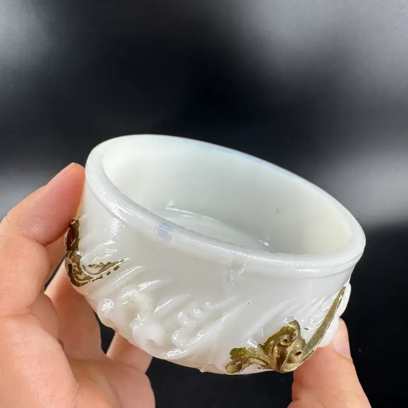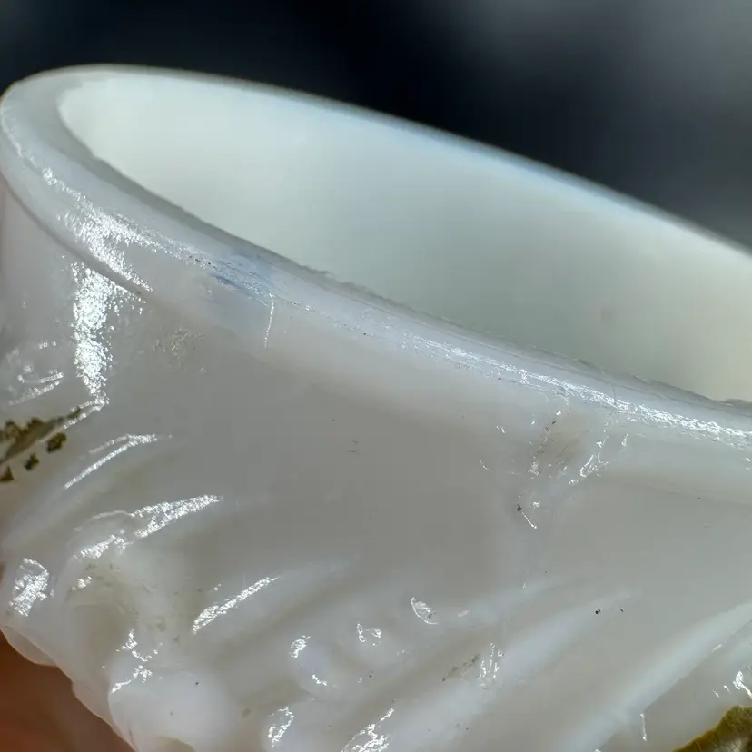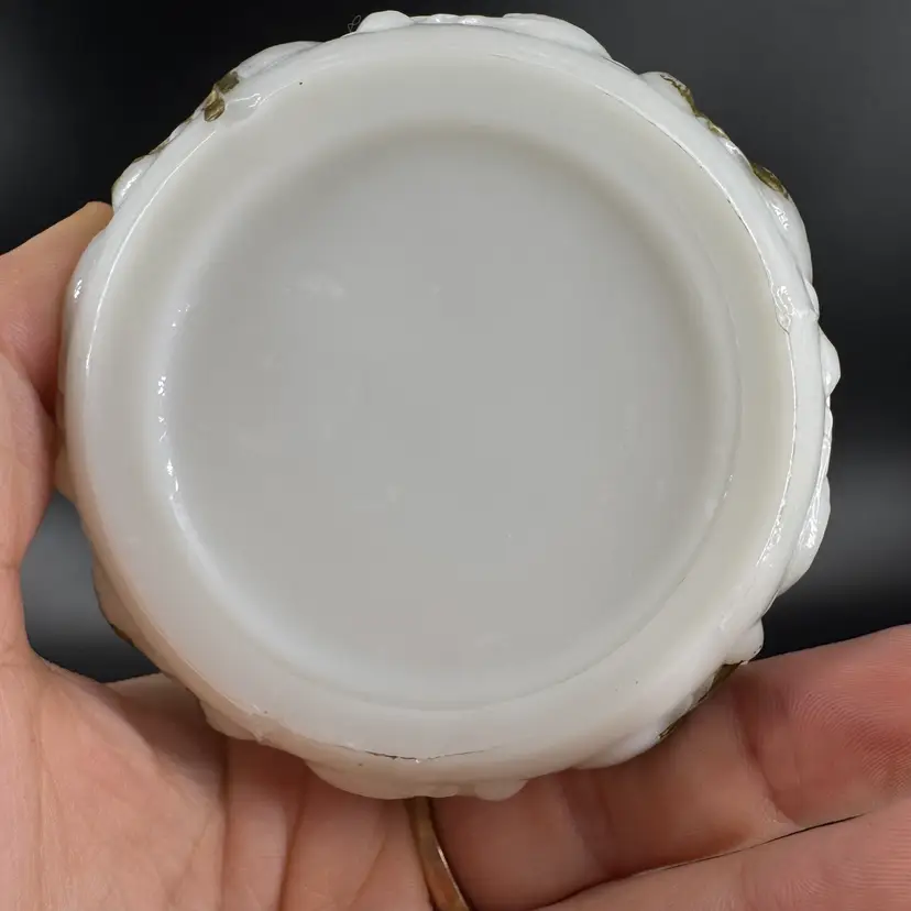Height is approximately 2” Does have chips on the rim can be seen in photos Not signed or marked Gold Paint is worn off
