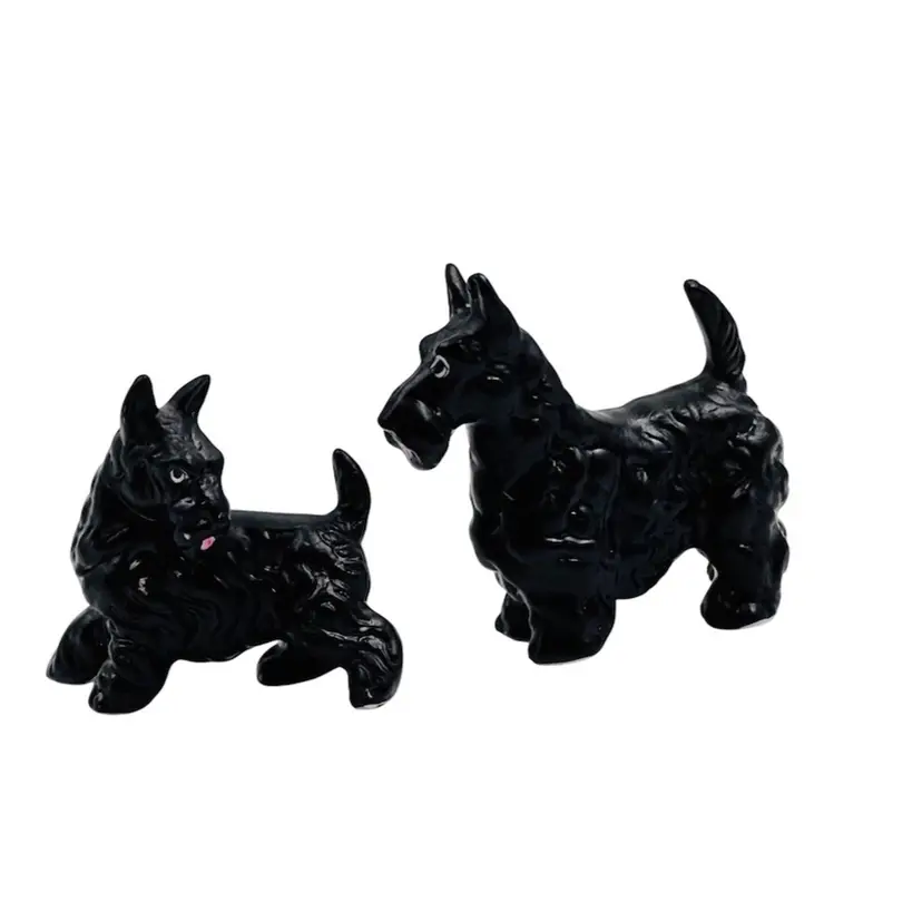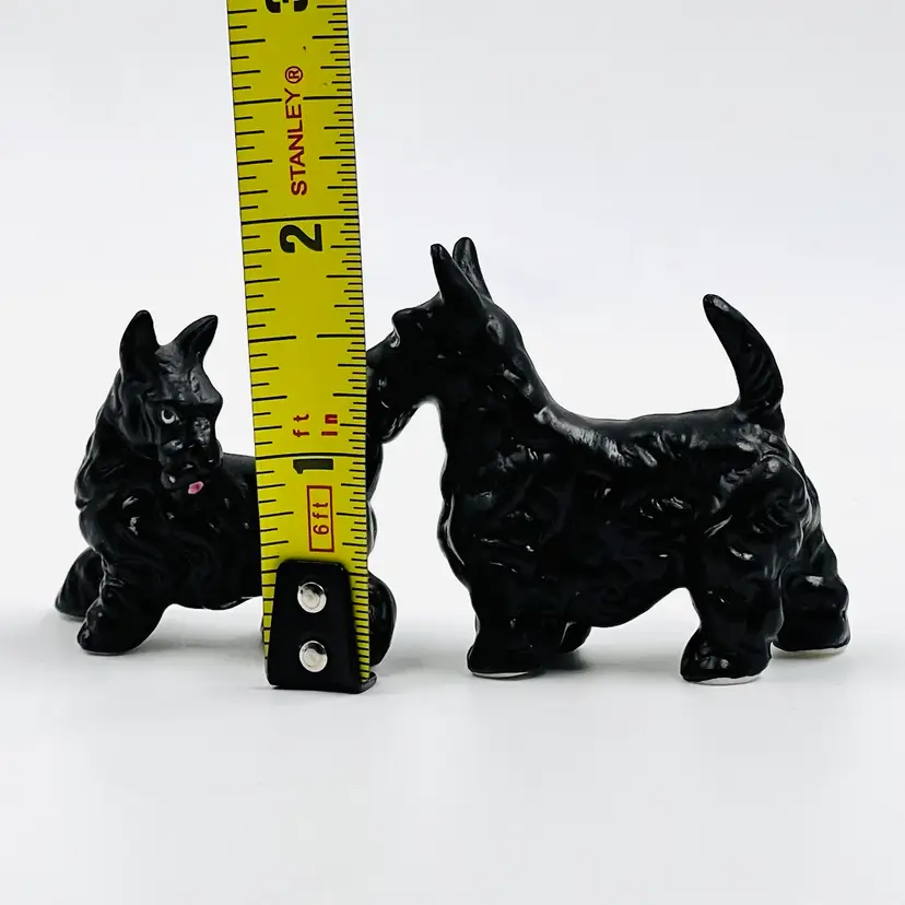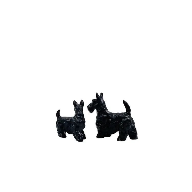 2 Miniature Scottie Dog Figurines Porcelain Scottish Terriers Lg=2.25x1.75x .75” Sm=1.5x1.5x.75 Provenance: Collectors Estate Auction