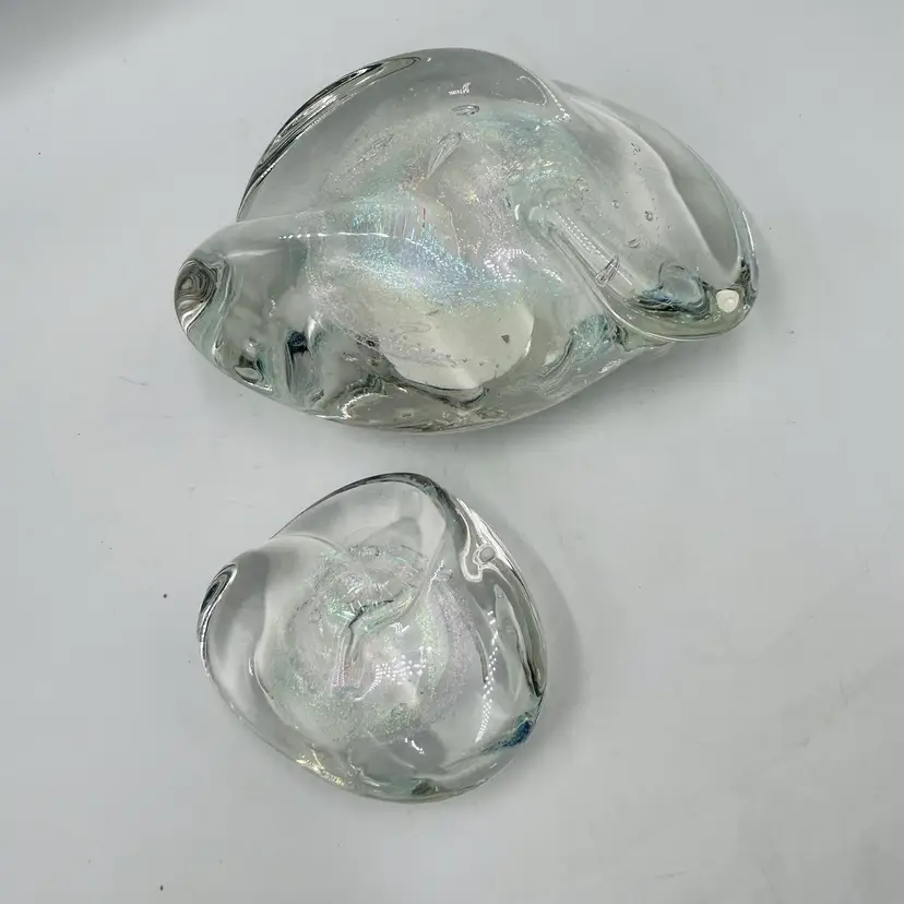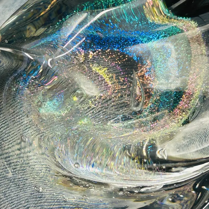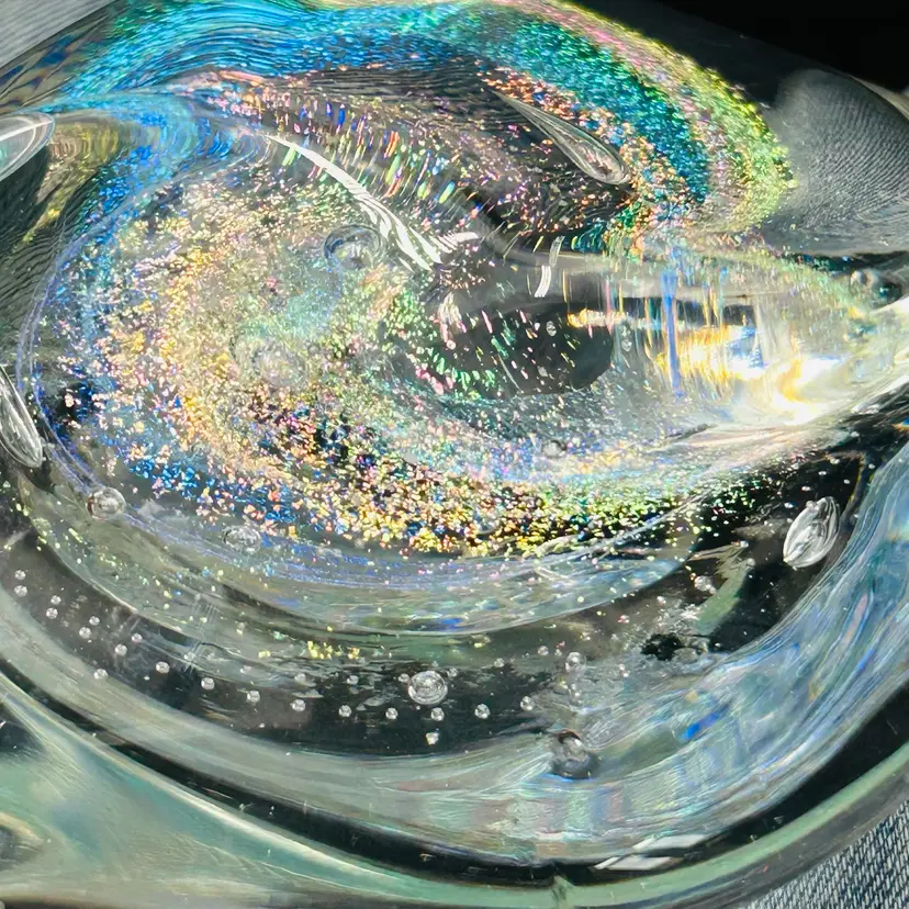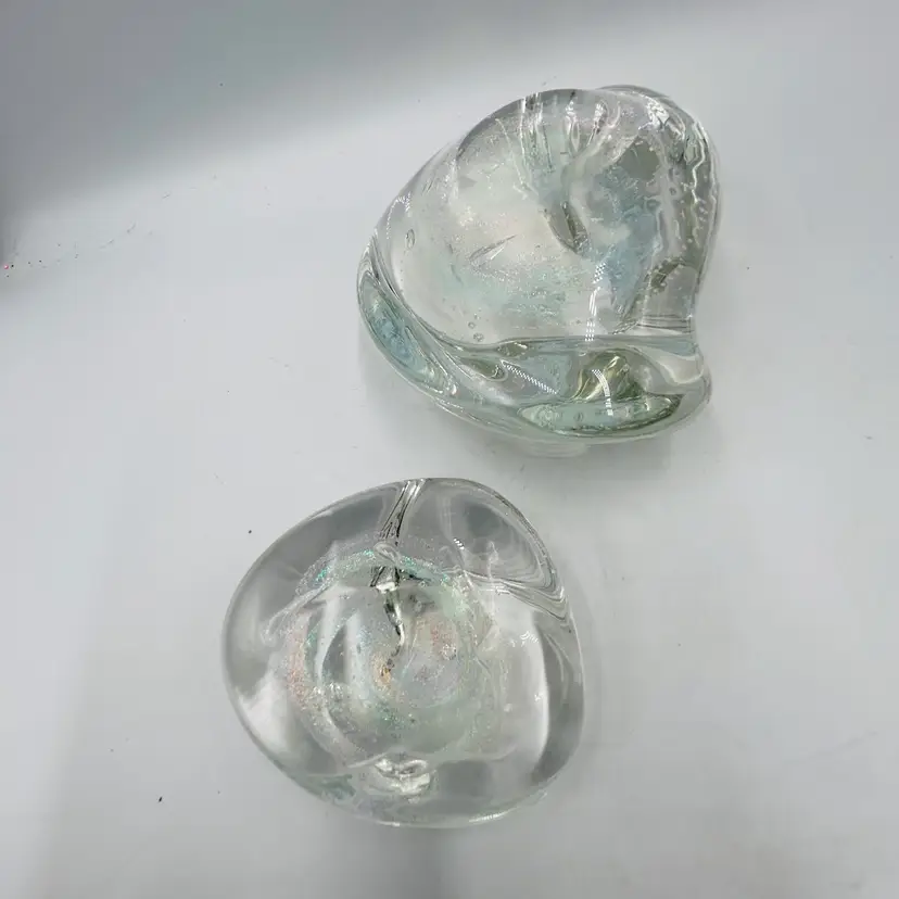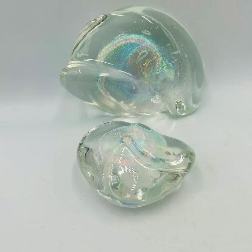 Both are free form in shape and have similar dichroic glitter galaxy swirls