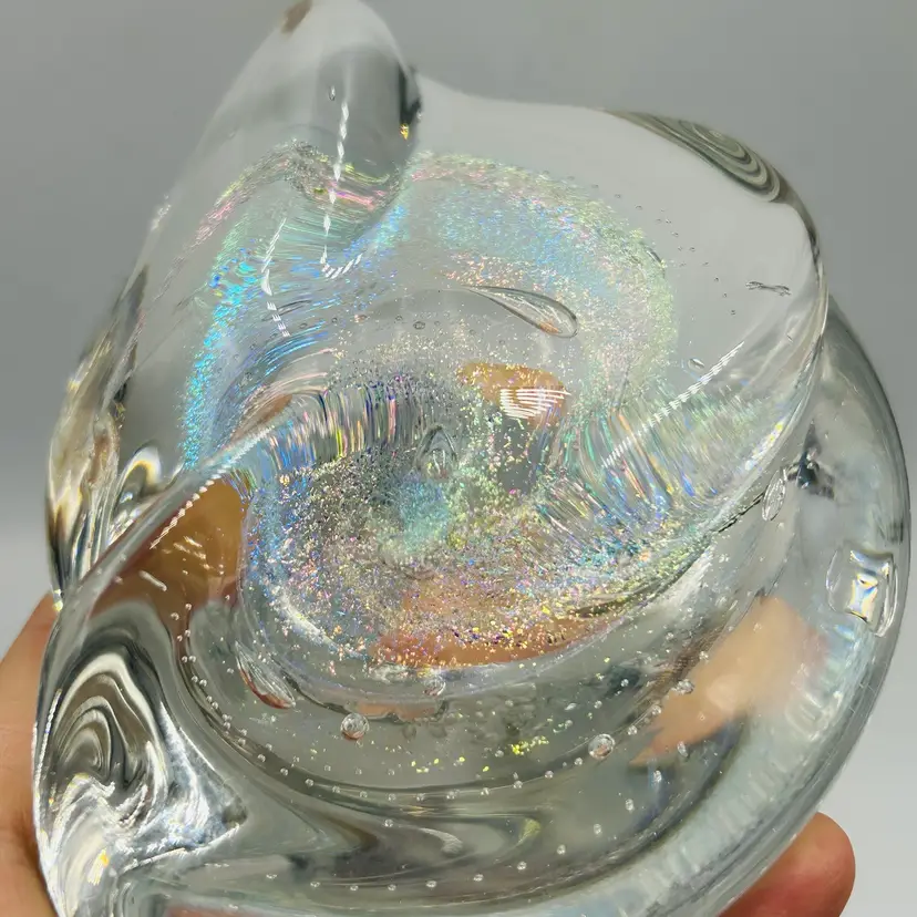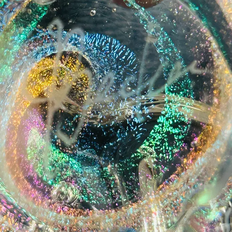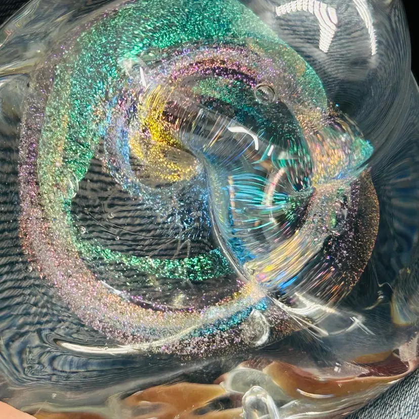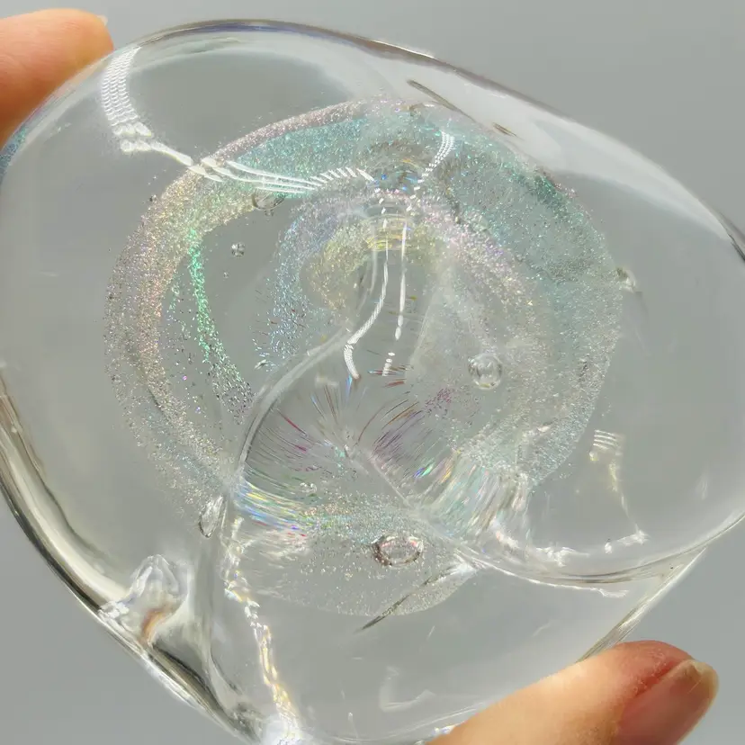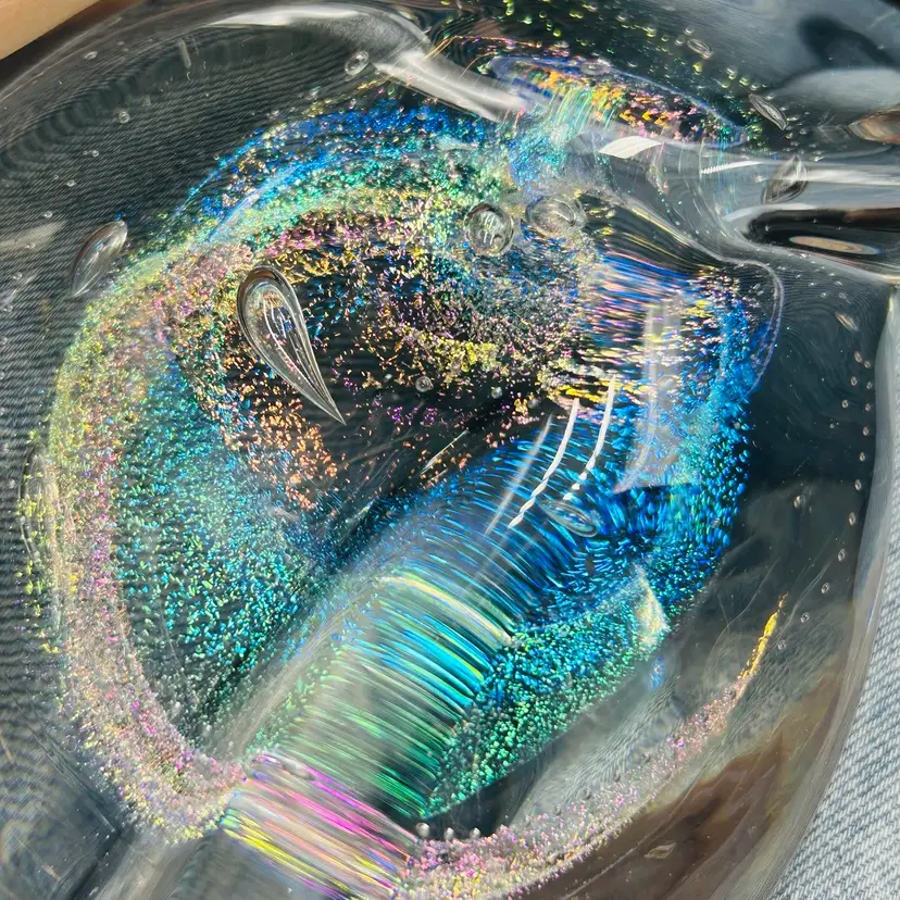 Both are free form in shape and have similar dichroic glitter galaxy swirls
