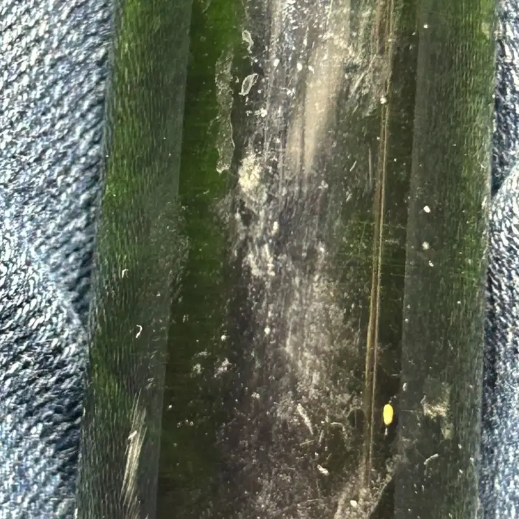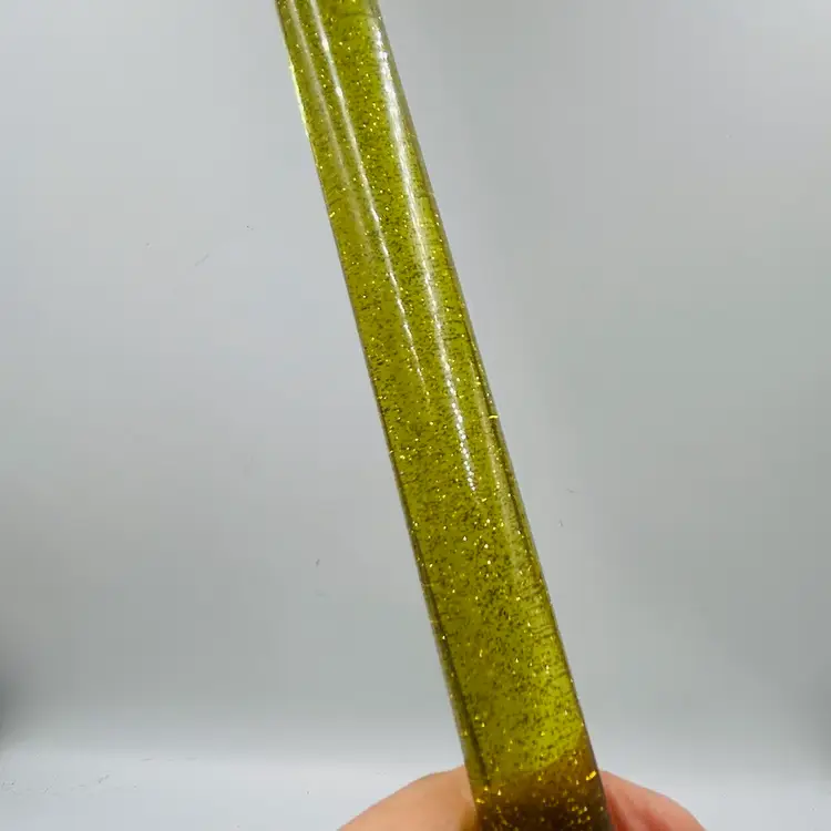 The solid green measures approximately 12” long. No cracks. There is some surface scratches when you look closely
