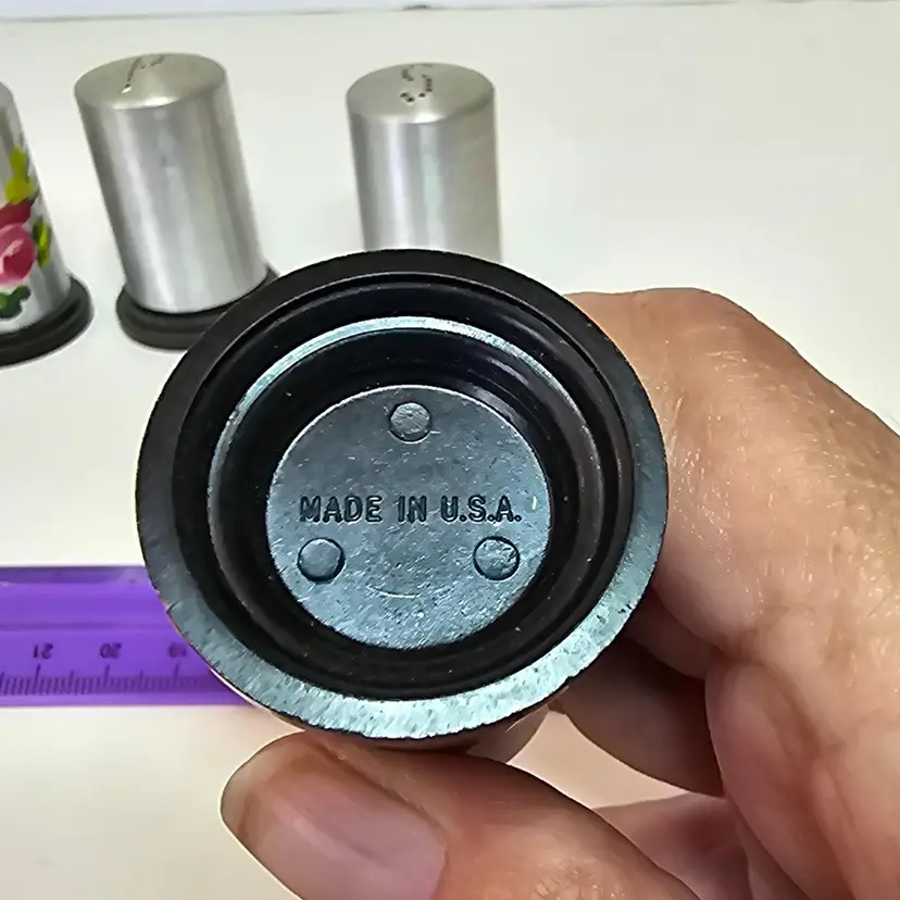 This is two sets of aluminum shakers. You can pair them either way you wish! Marked made in USA
