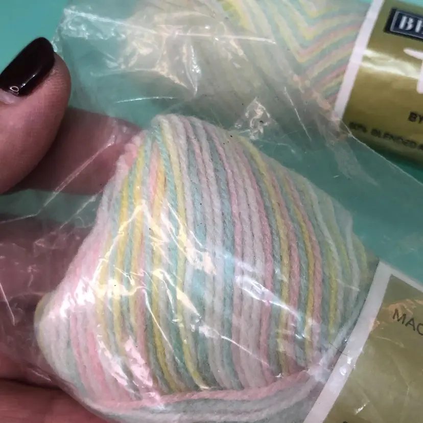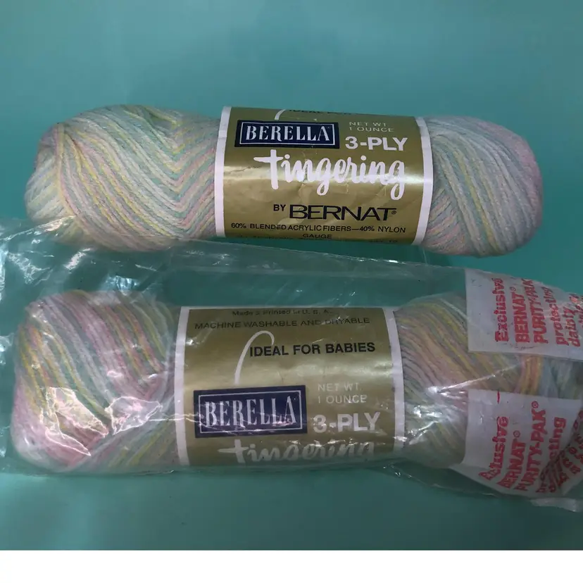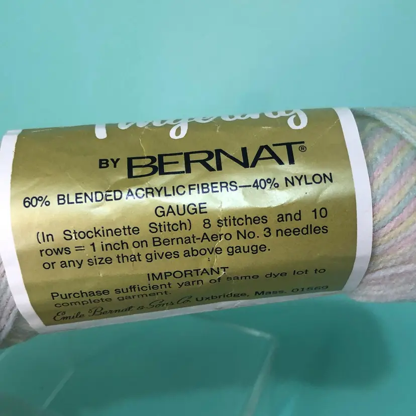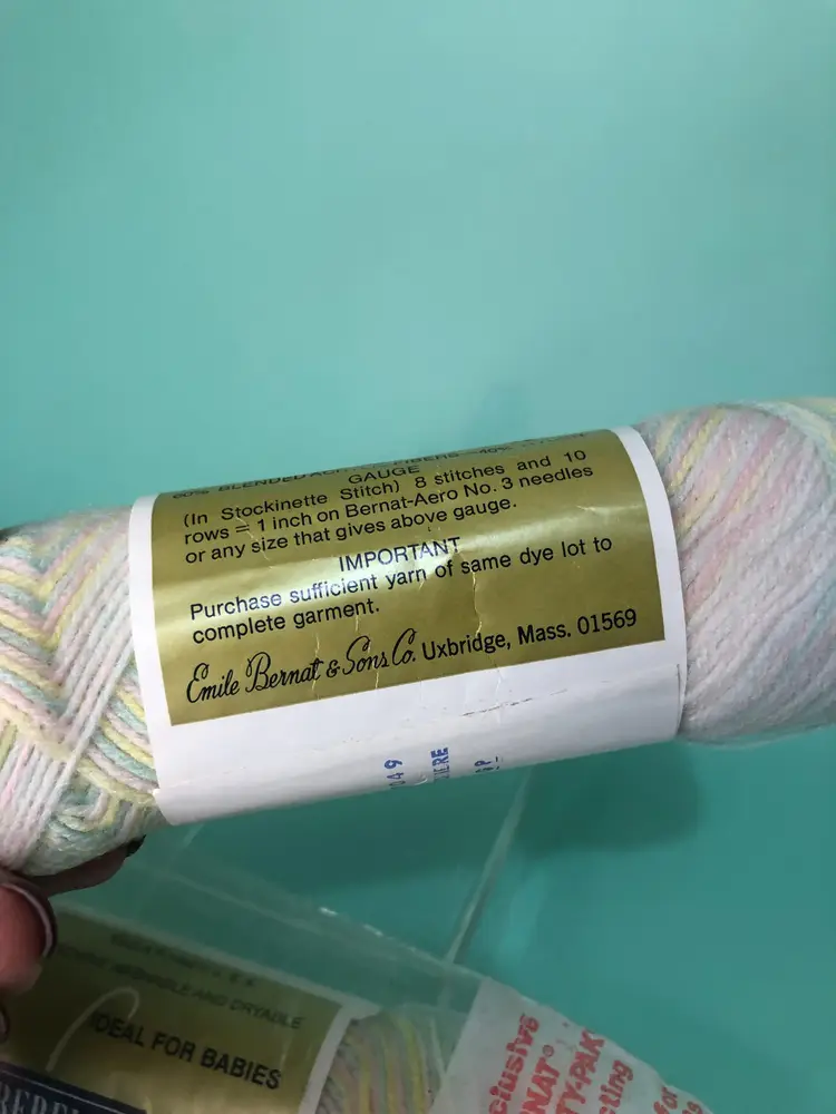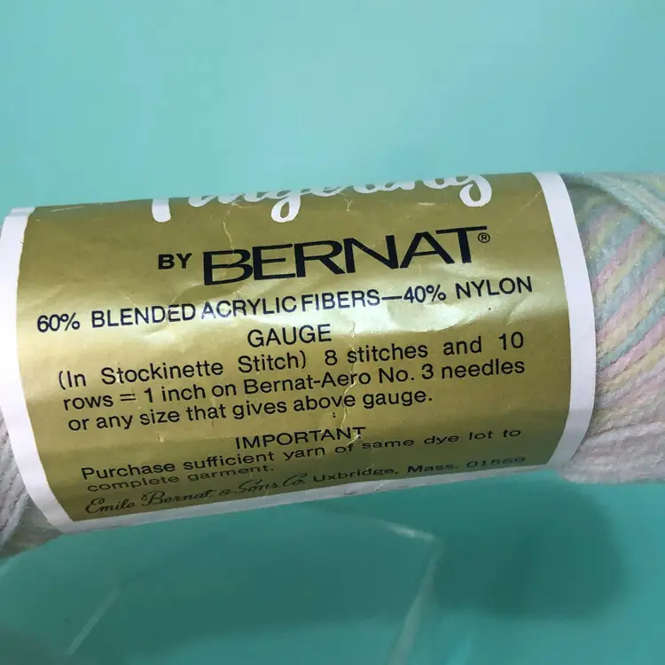 Nylon & Acrylic. New old stock. All the yarn in the show is free from smells.