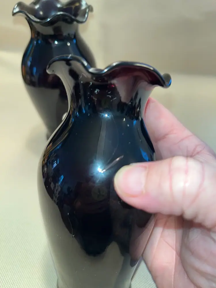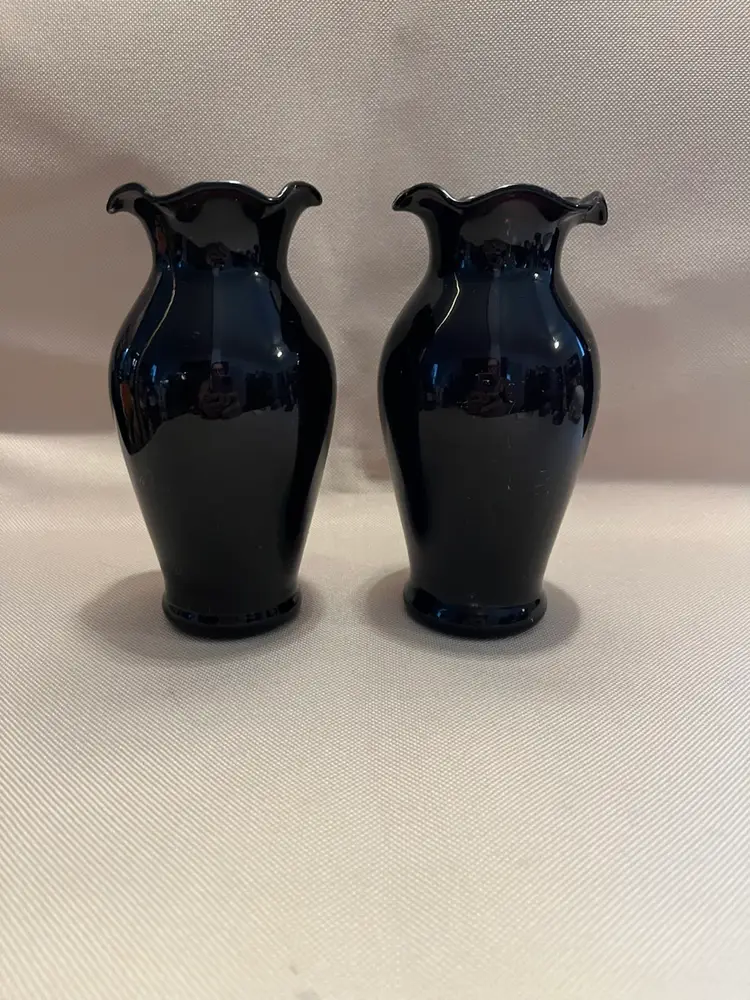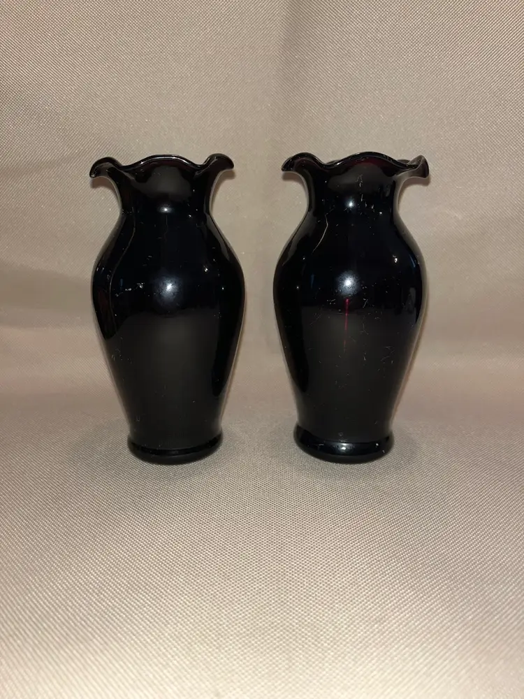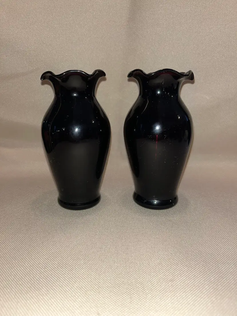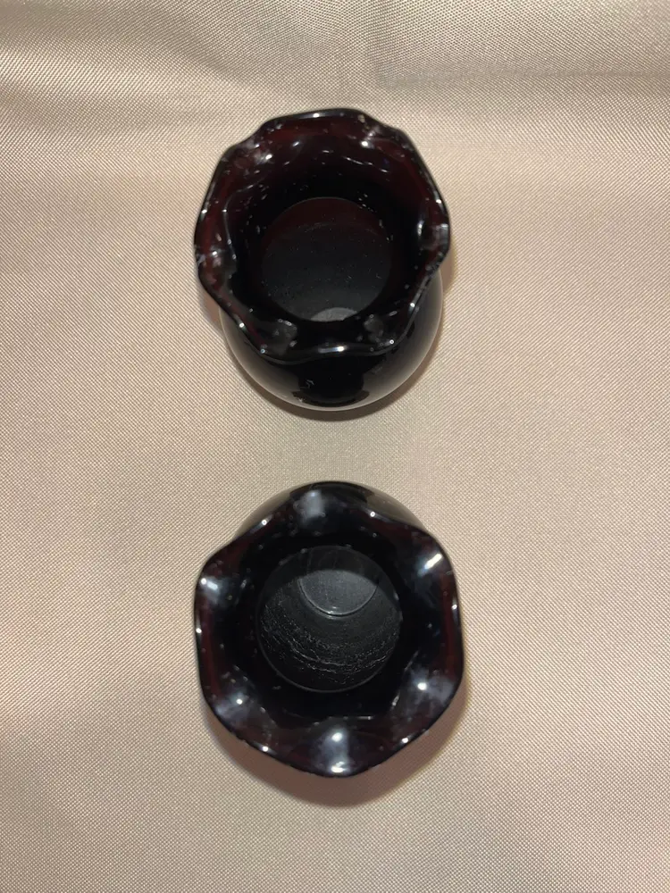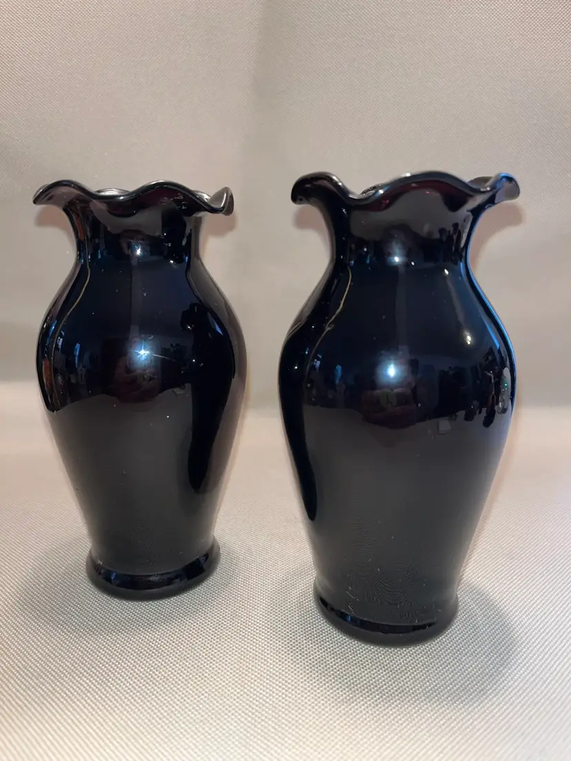 2 sweet little 5 1/2” tall bud vases black amethyst glass. Great for any season but especially spooky season