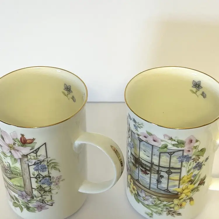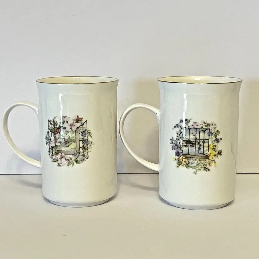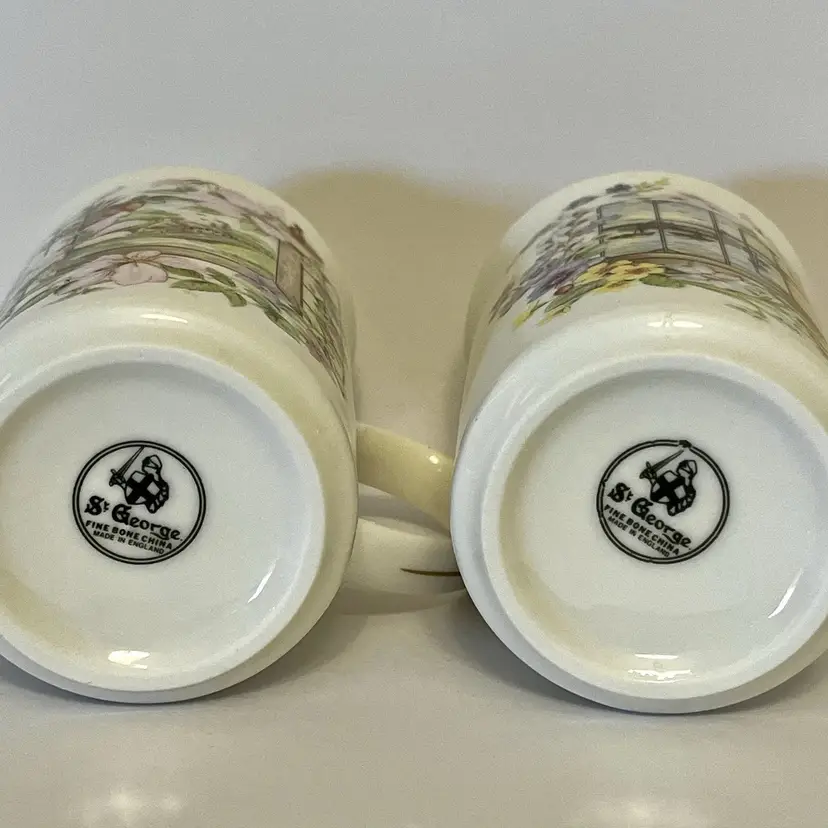 2 Fine Bone China Tea/ Coffee Cups St. George Design - Floral Made in England