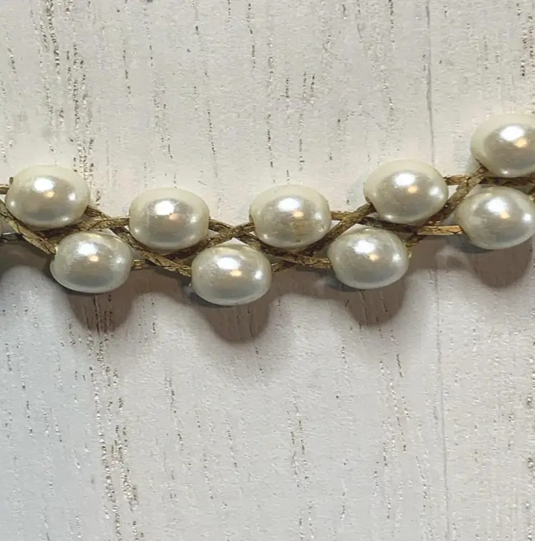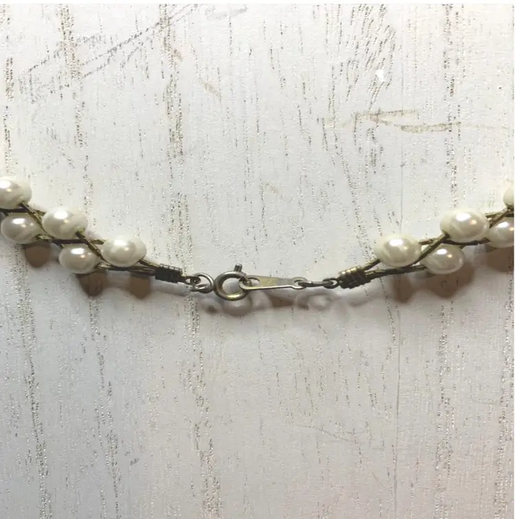 Stunning 22 inch vintage two strand weaved pearl necklace. My guess is the pearls are faux due to the uniform shape but they are in very good condition. I don't see any chipping or peeling. Please see photos as they are part of the description. This is a unique necklace and would look wonderful on a bride OR even the Mother of the Bride.