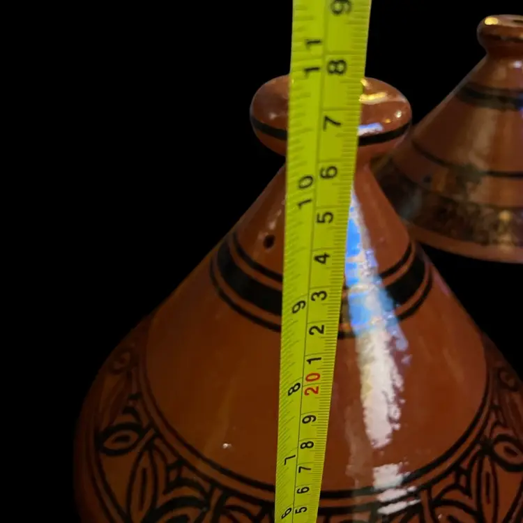 2- Verve Culture Moroccan Terracotta Tagine Madmoun Poterie Iminifri Chagouri Normal Wear. See Pics. 11-13” diameter. 8lbs each. Condition is Used. Shipped with USPS Mail