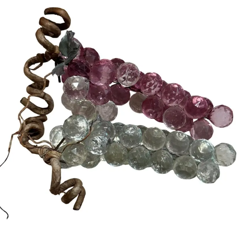 • Crystal-like appearance • Twisted vine stems • Decorative use • Intricate detailing • Acrylic Grapes