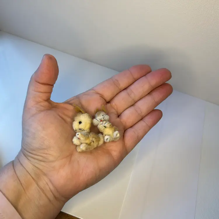 Set of 2 Vintage Austrian ARA Wooly Toy Miniature Bunny Rabbits Pocket Pet Toy Figures
