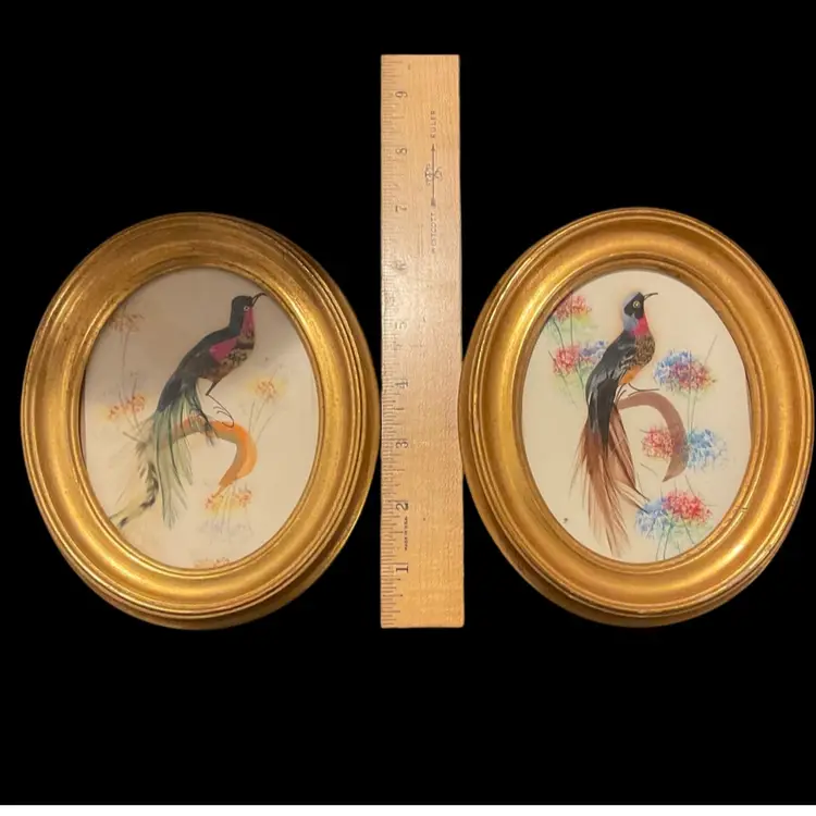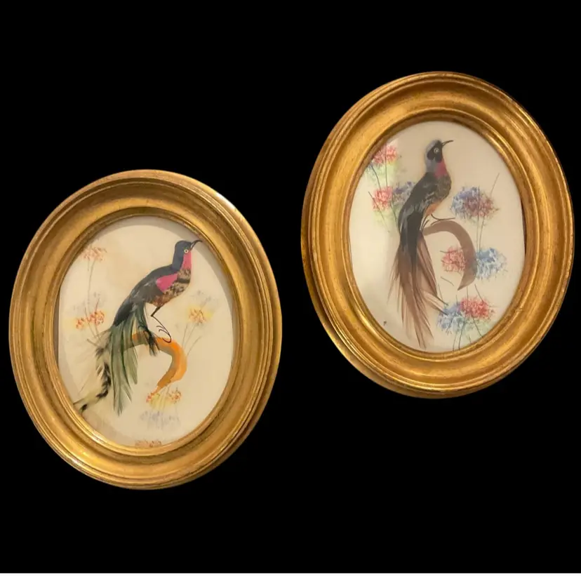 Vintage Bird Feather Art Framed Oval Hanging Wall Pictures