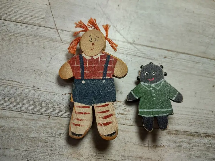 Used vintage condition with wear and scuffing. Closure on smaller pin seems loose. Larger pin is signed "Bakers '88." Larger pin measures approximately 2.5" long and smaller pin measures approximately 1 5/8" long. See photos for more detail.
