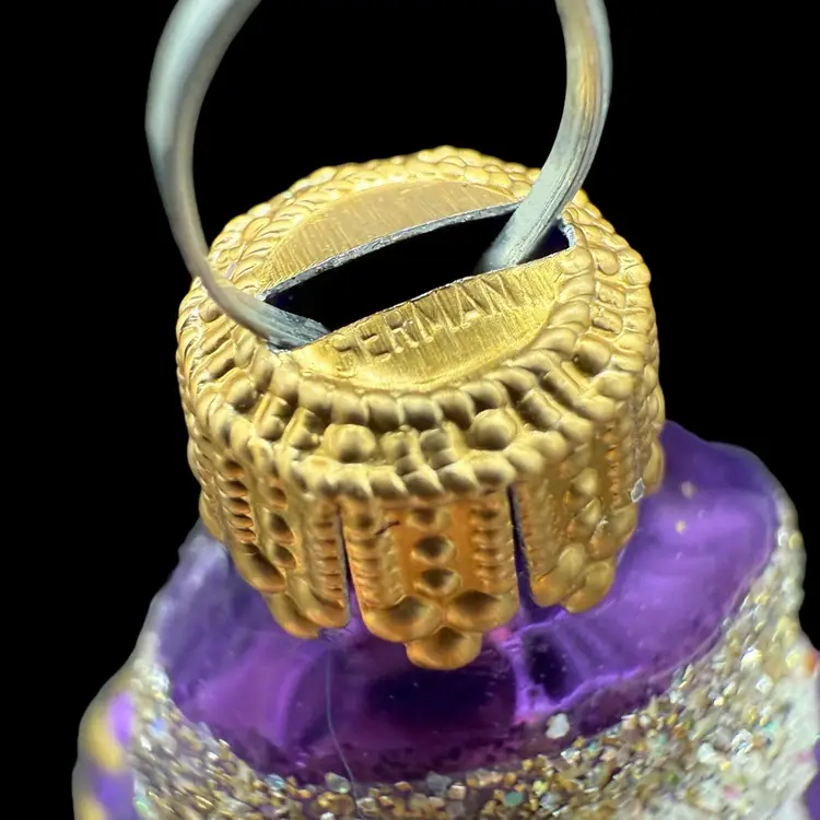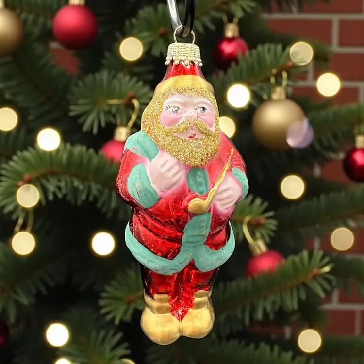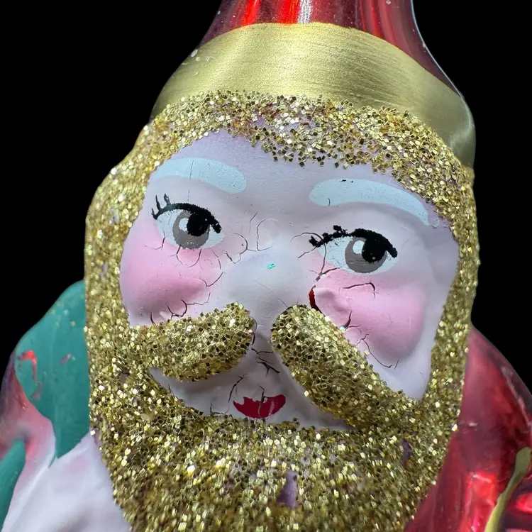 These vintage Germany Santa Claus Christmas blown glass ornaments are hand painted, adding a unique and charming touch to any holiday decor. The multicolored ornaments feature a classic Santa Claus shape and glittery embellishments, perfect for adding a festive and nostalgic touch to your Christmas tree. Made from glass and hand-blown in Germany, these ornaments are a collectible item that will be cherished for years to come.