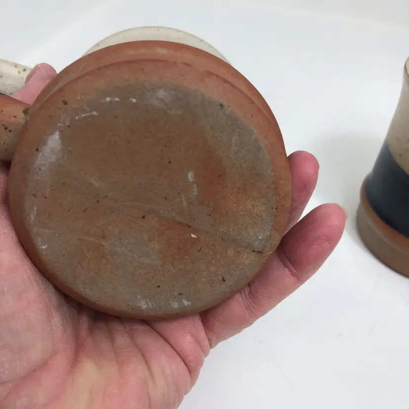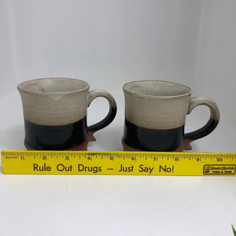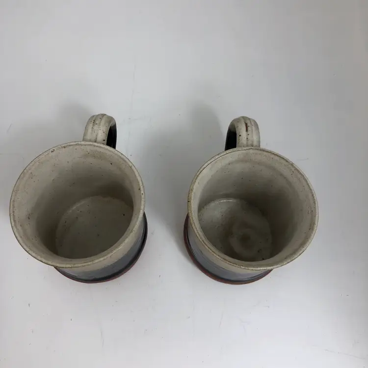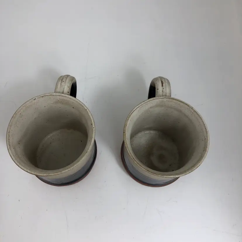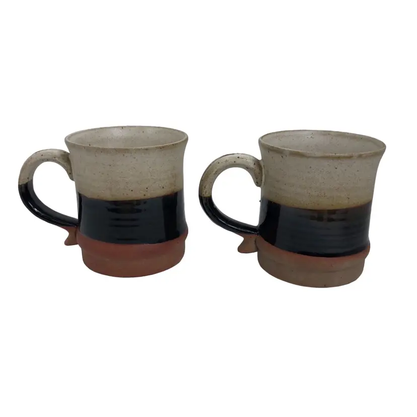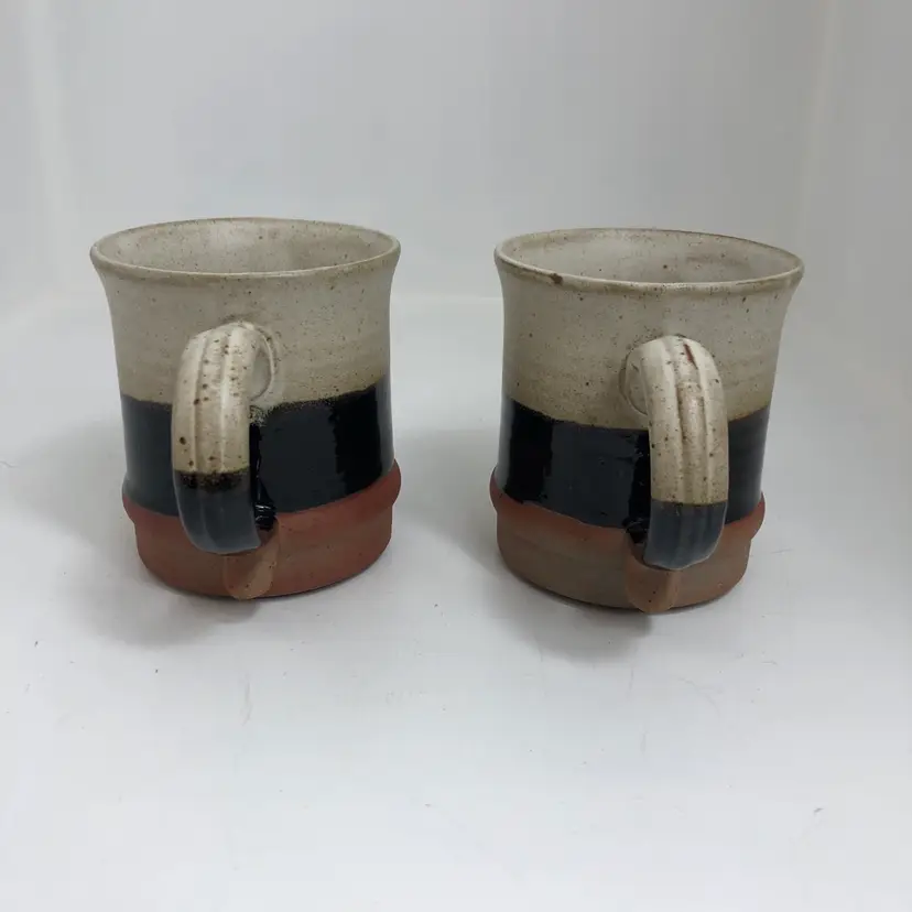 Beautiful set of 2 handmade pottery mugs. Earthy tones with a unique design. Perfect for your morning coffee or tea. Excellent condition with no chips or cracks.