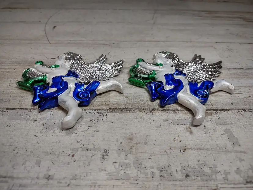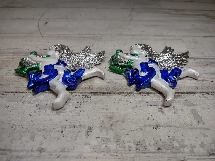Used vintage condition with wear and paint chips. Ornaments measure approximately 3.75" long. See photos for more detail.