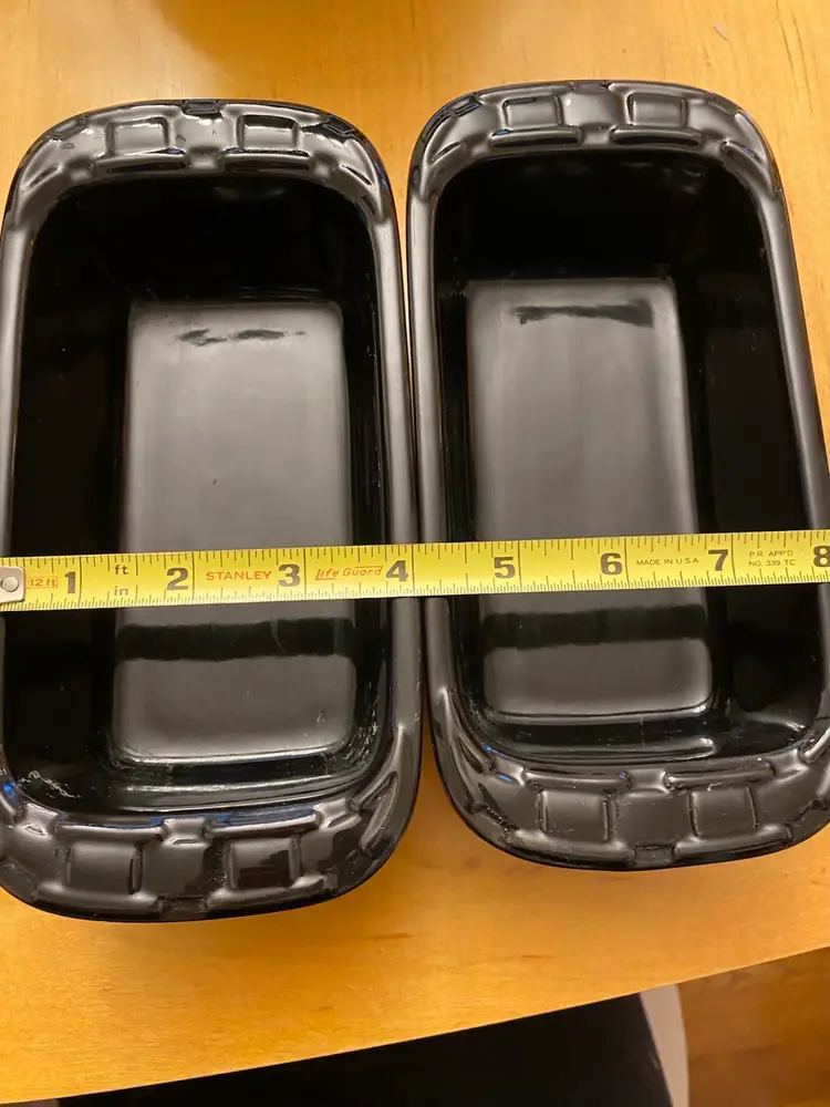 2 piece set of black LONGABERGER ceramic 4” x 8” loaf pans. These are marked LONGABERGER and look absolutely brand new!
