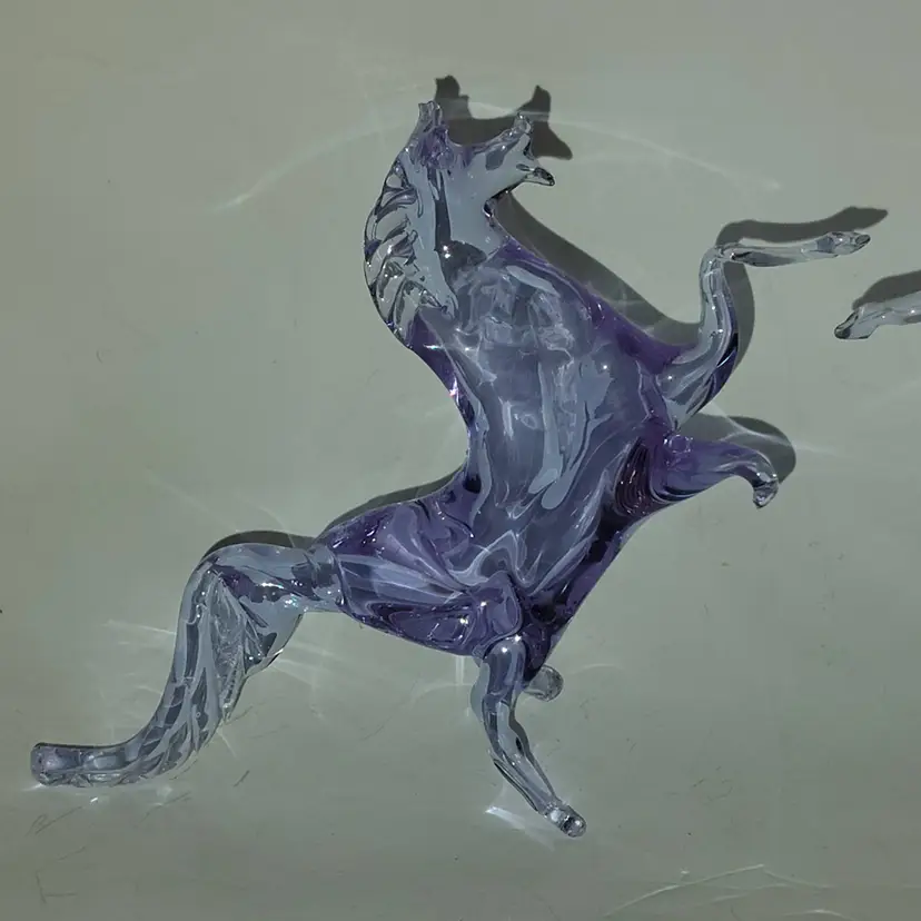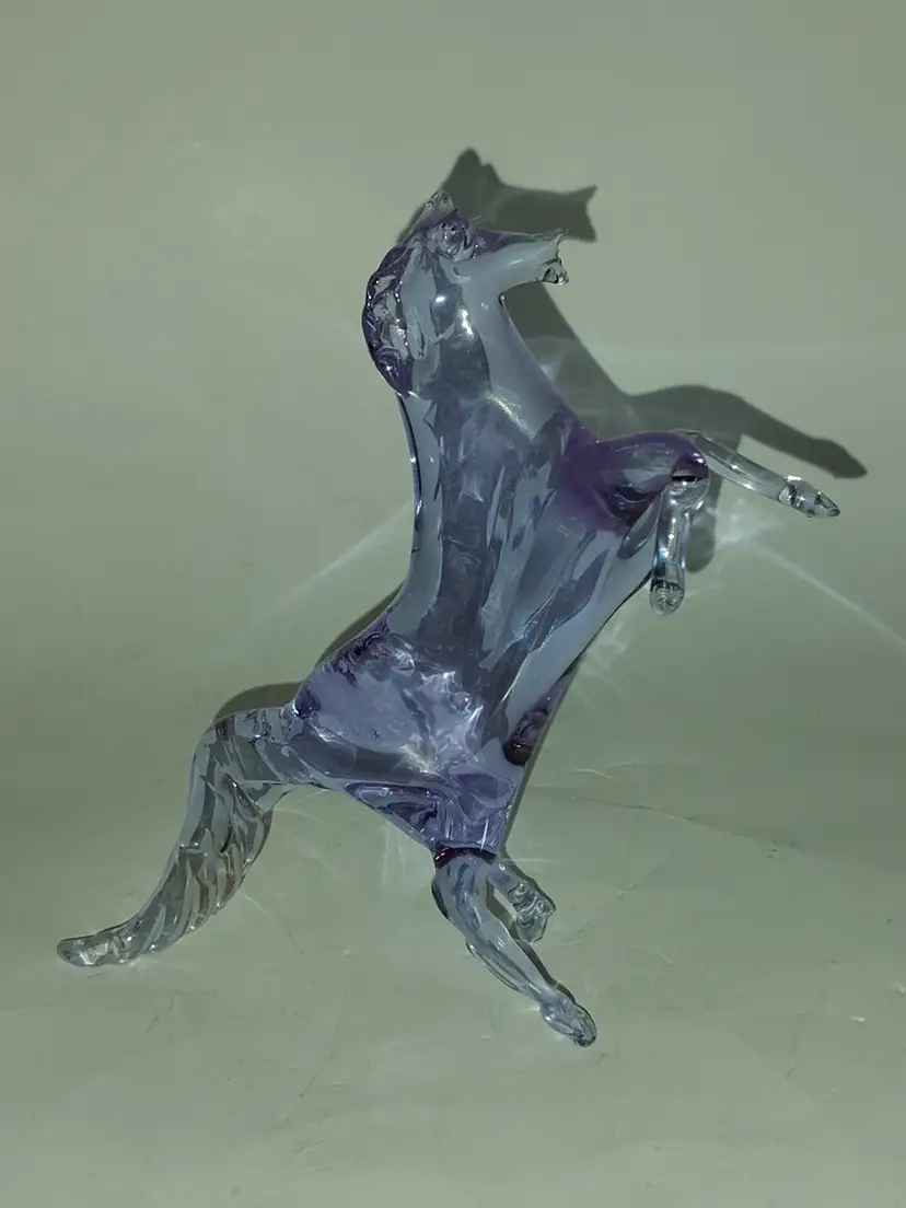 Gorgeous and scarce pieces of Neodymium glass from Murano, Italy! Changes from a lilac purple to a beautiful blue, depending on the light source! 2 Avail, Each Sold Separately. Measure approx. 6.5" long, x 3.5" x 5.75" when in 'rearing position'. Great cond.