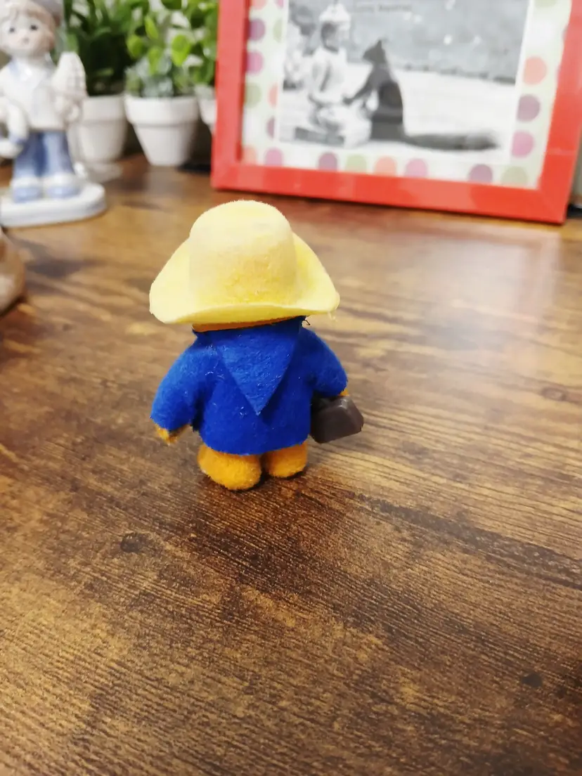 This charming vintage Paddington Bear figurine is a delightful addition to any collection. Dressed in his iconic blue coat and yellow hat, this little bear brings a touch of nostalgia and whimsy to your decor. Perfect for fans of classic children's literature or collectors of unique figurines. Measures approximately 2.5 inches tall.