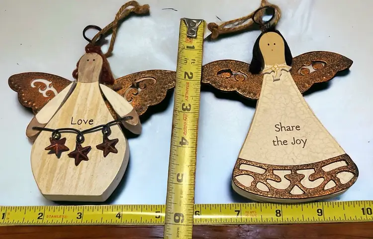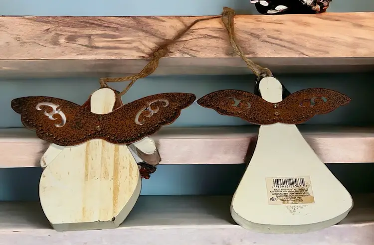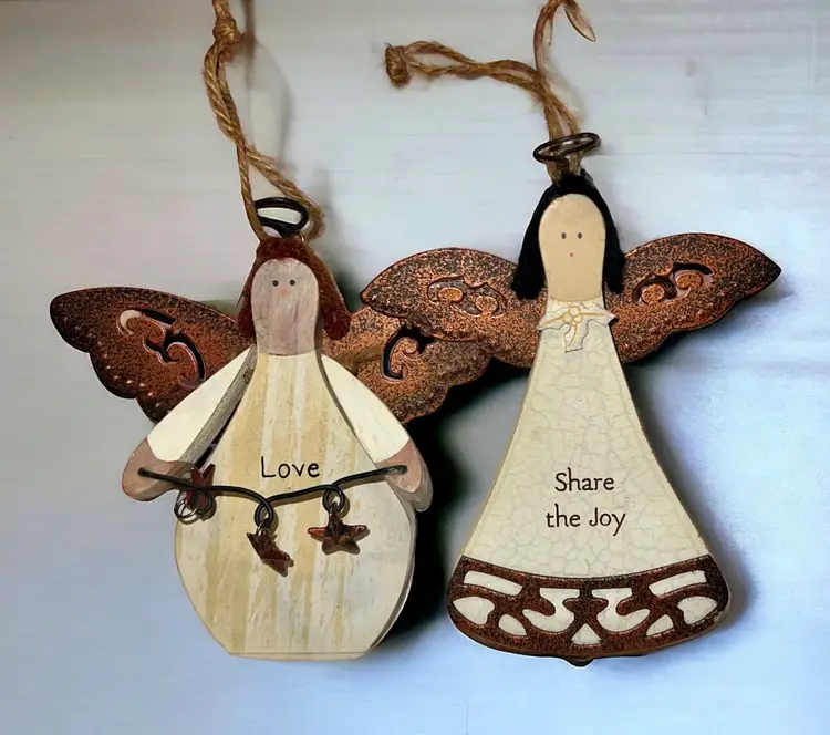 Add these lovely vintage Angel ornaments to your Christmas tree decorations this year. Featuring a rustic style, these wooden and metal ornaments come in a set of 2 and are perfect for any family. The colorful multicolor Angel pattern adds a festive touch to your holiday decor.