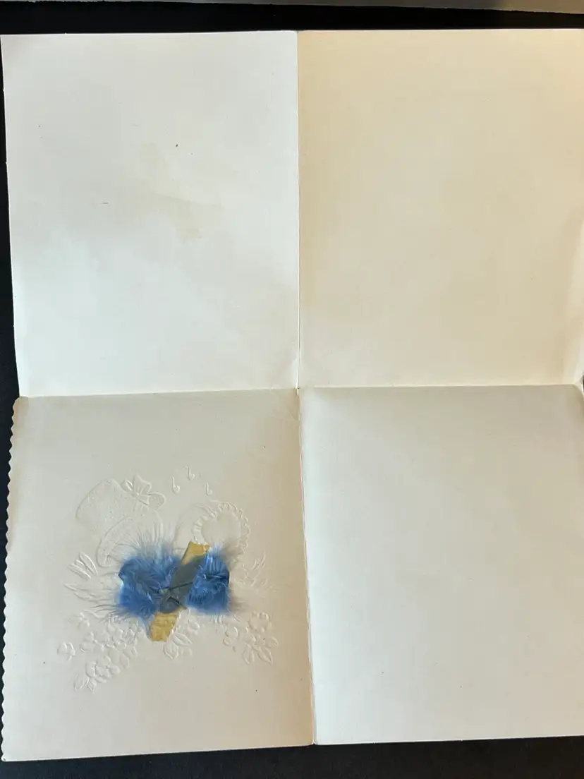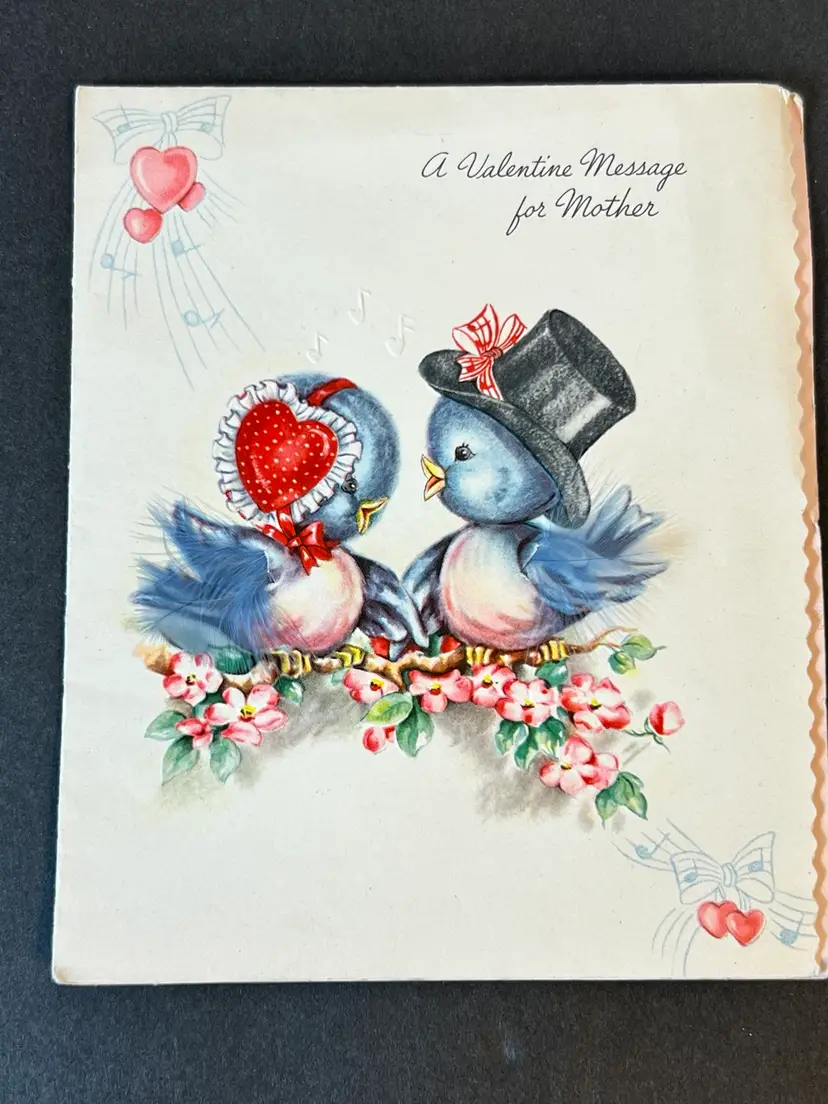 Cute pair of vintage cards. Both have writing inside. Good condition. Birds have real dyed feathers. Birds card is 5.5”x 6.5”. House card is 6.75” x 4.75”. No envelopes. Please review the pictures and let me know if you have any questions before purchasing