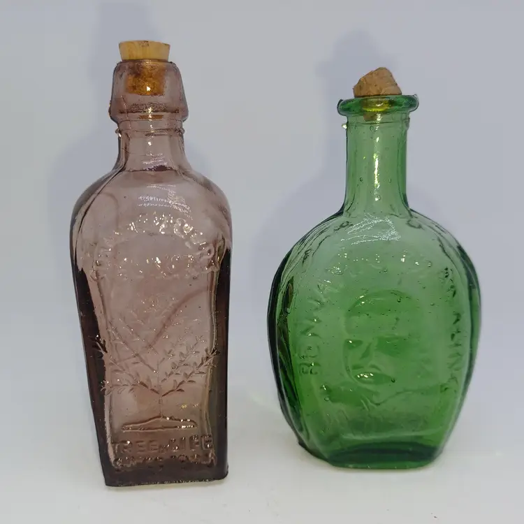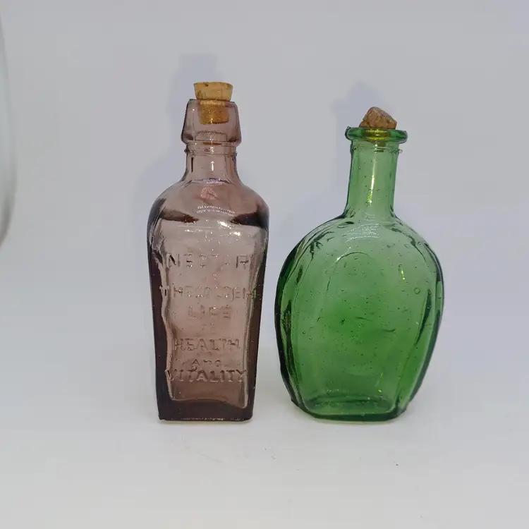 2 Vintage Wheaton Bottles Small Purple Tree of Life Green Benjamin Franklin