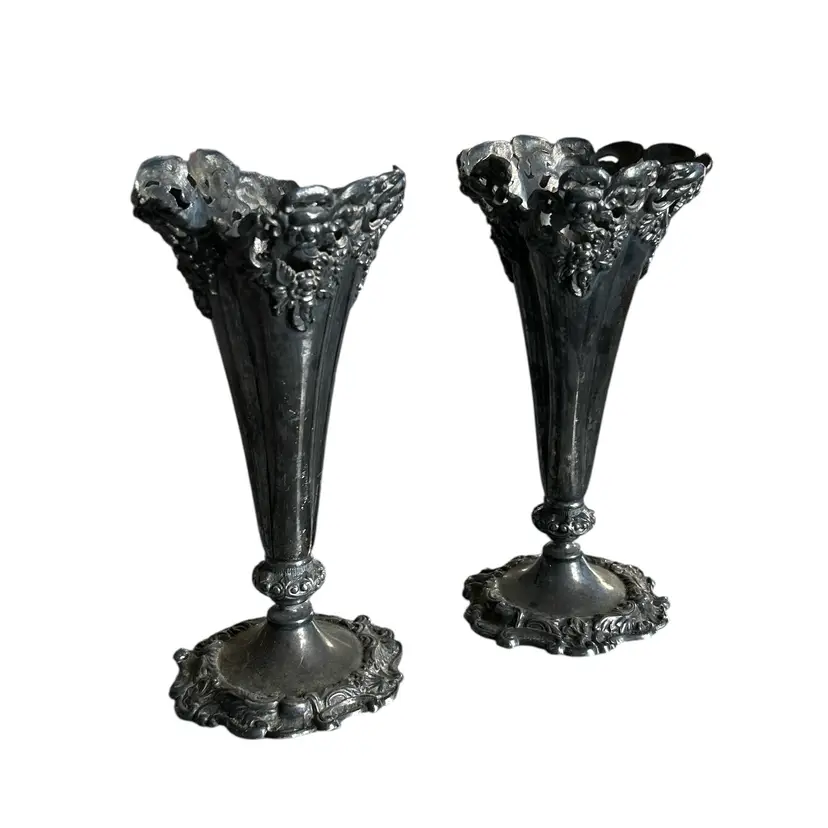 2 Vintage Wilcox Silver Plate Vases