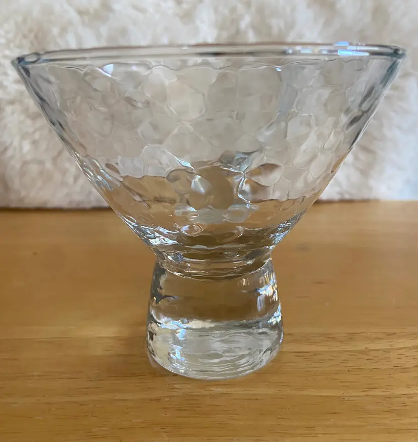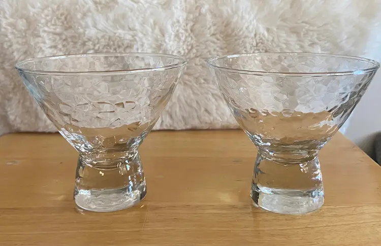 Elevate your table setting with the Voguenest Textured Cocktail Glasses or Dessert Bowl set, a versatile addition to your glassware collection. Crafted from high-quality, lead-free glass, these pieces are designed with a unique textured pattern that adds a touch of elegance to any occasion, whether it's a sophisticated dinner party or a casual get-together. Perfect for serving your favorite treats and beverages. With a height of 3.75 inches and a width of 4.25 inches, these glasses are sized just right for an intimate dining experience, making them an ideal choice for couple's entertainment or a refined solo dining affair.