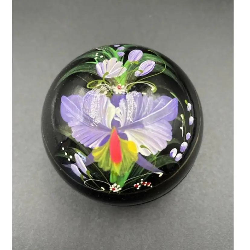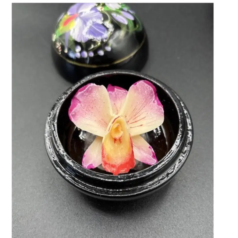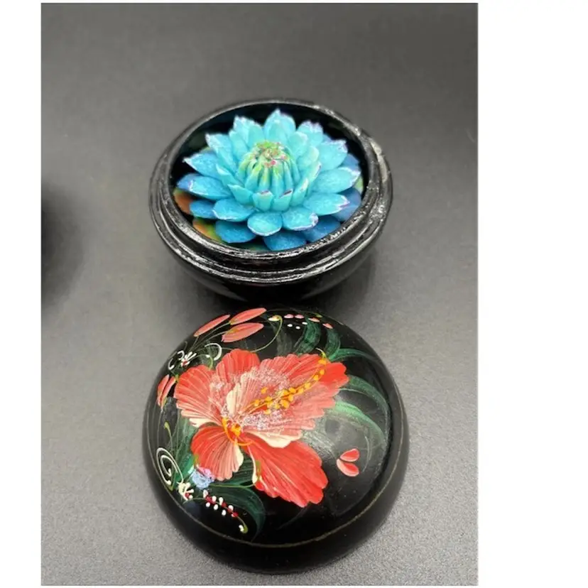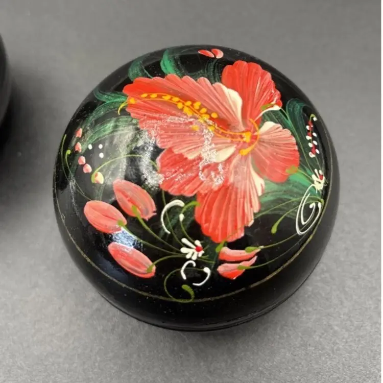 2 Vtg Hand Painted Lacquer Candle Holder.
