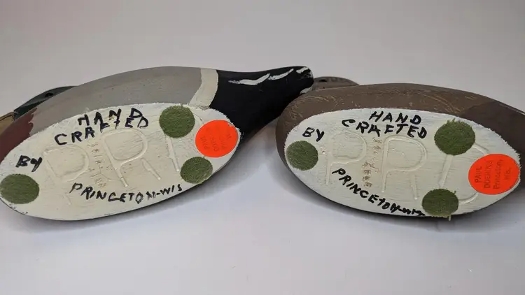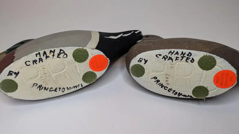This vintage PRD Paul Doering Princeton Wis Decoy set is a must-have for any avid hunter. The decoy ducks are crafted from high-quality wood and feature glass eyes that provide a realistic touch. The set includes two Blue-Winged Teal decoys, each measuring roughly 7 inches.