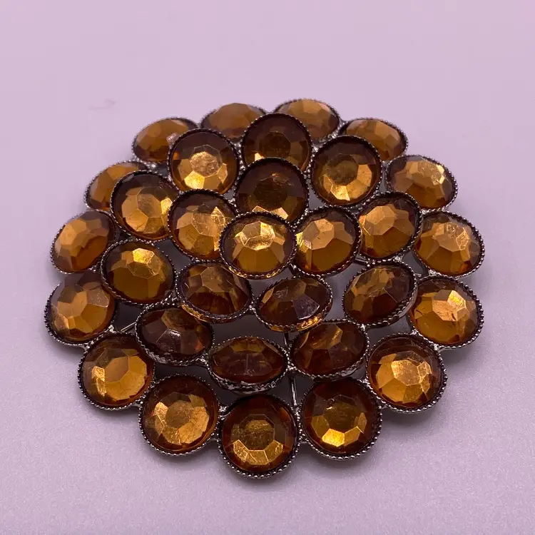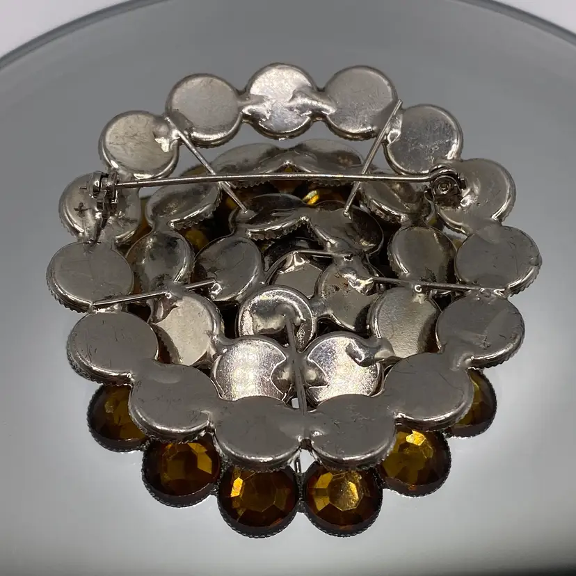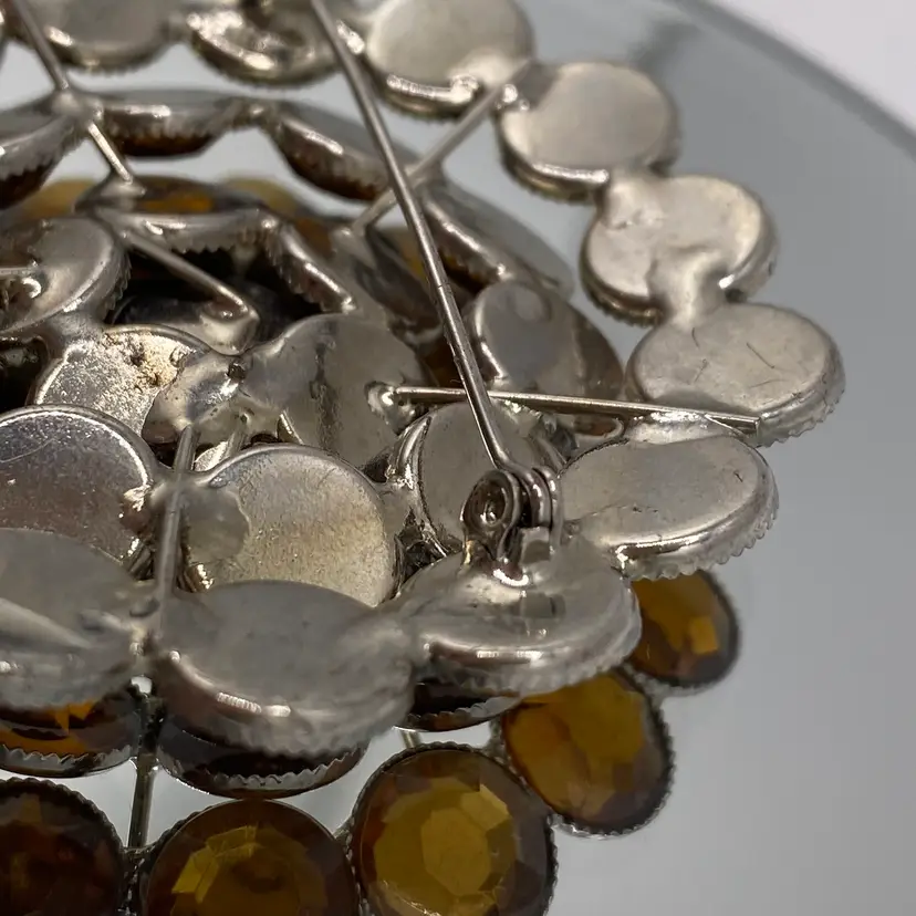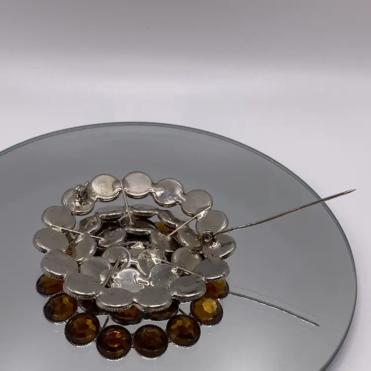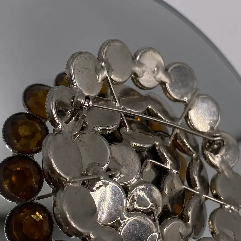 Add a touch of vintage beauty to any outfit with this 2" rhinestone brooch. The silver-tone metal is accented with sparkly brown-colored stones that give off a fashionable and artistic vibe. Perfect for any occasion, this piece is a must-have for any woman who wants to elevate her style.