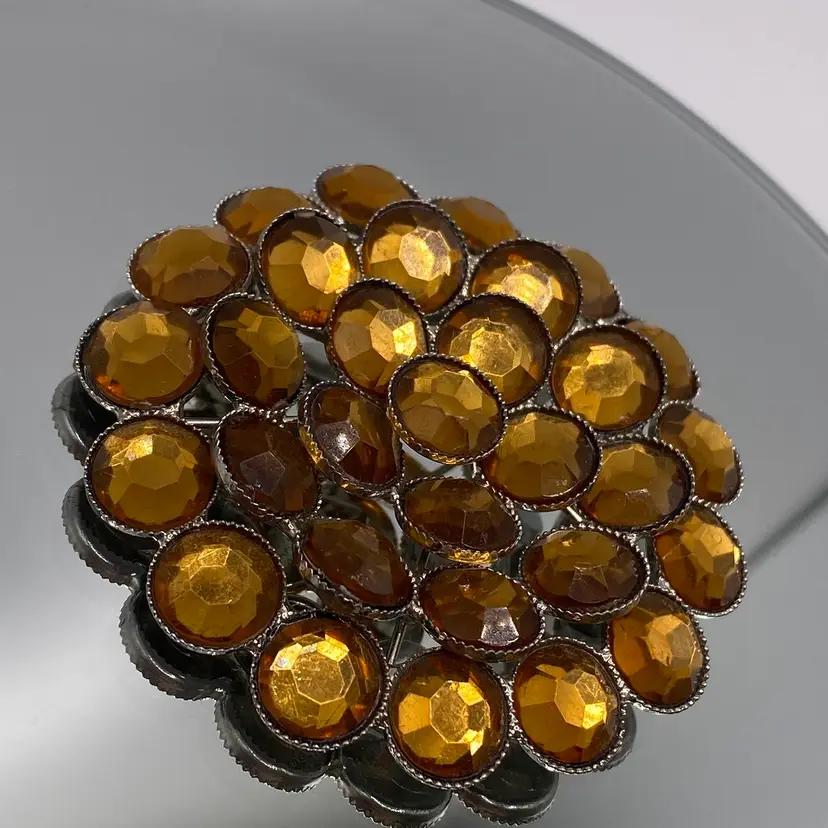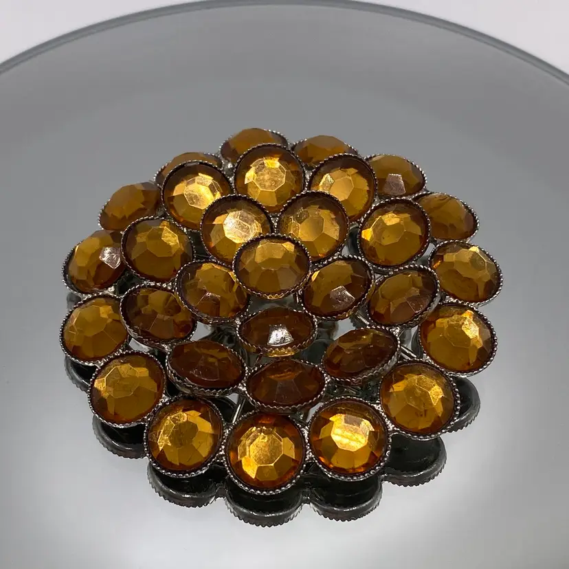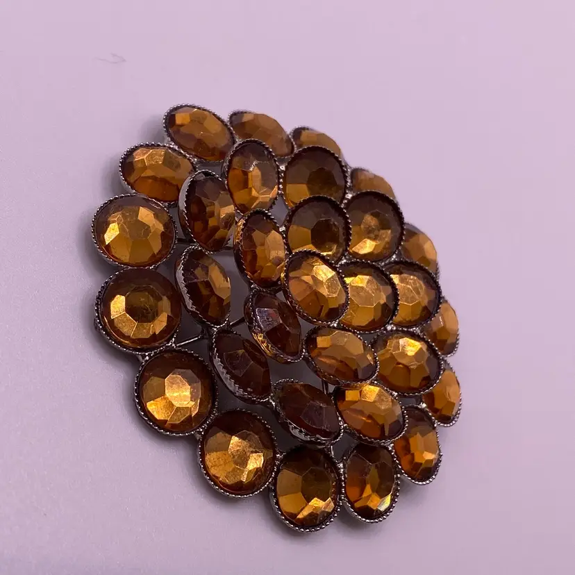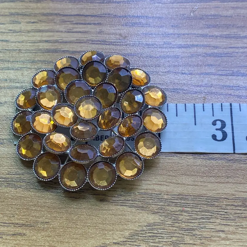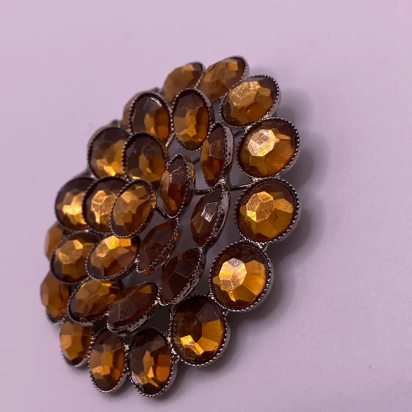 Add a touch of vintage beauty to any outfit with this 2" rhinestone brooch. The silver-tone metal is accented with sparkly brown-colored stones that give off a fashionable and artistic vibe. Perfect for any occasion, this piece is a must-have for any woman who wants to elevate her style.
