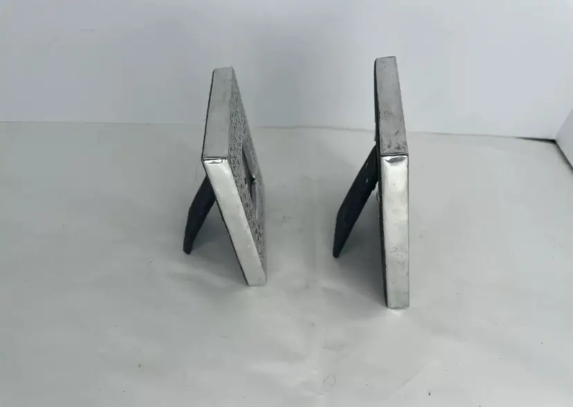 The frames are free-standing and suitable for all occasions, making them a great addition to any collection. The ornate features and square shape of the frames make them a unique and stylish choice for any decor. These frames were manufactured in India between 1990 and 1999 and are perfect for collectors looking for a rare and beautiful piece.