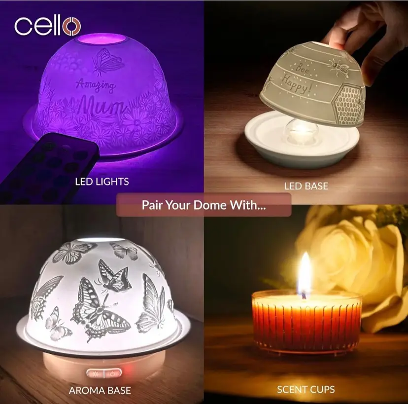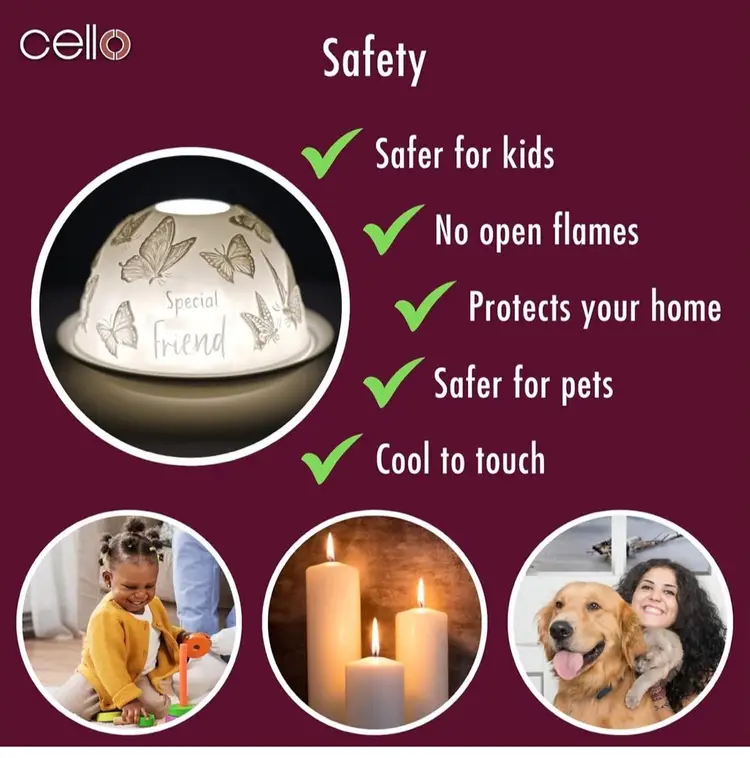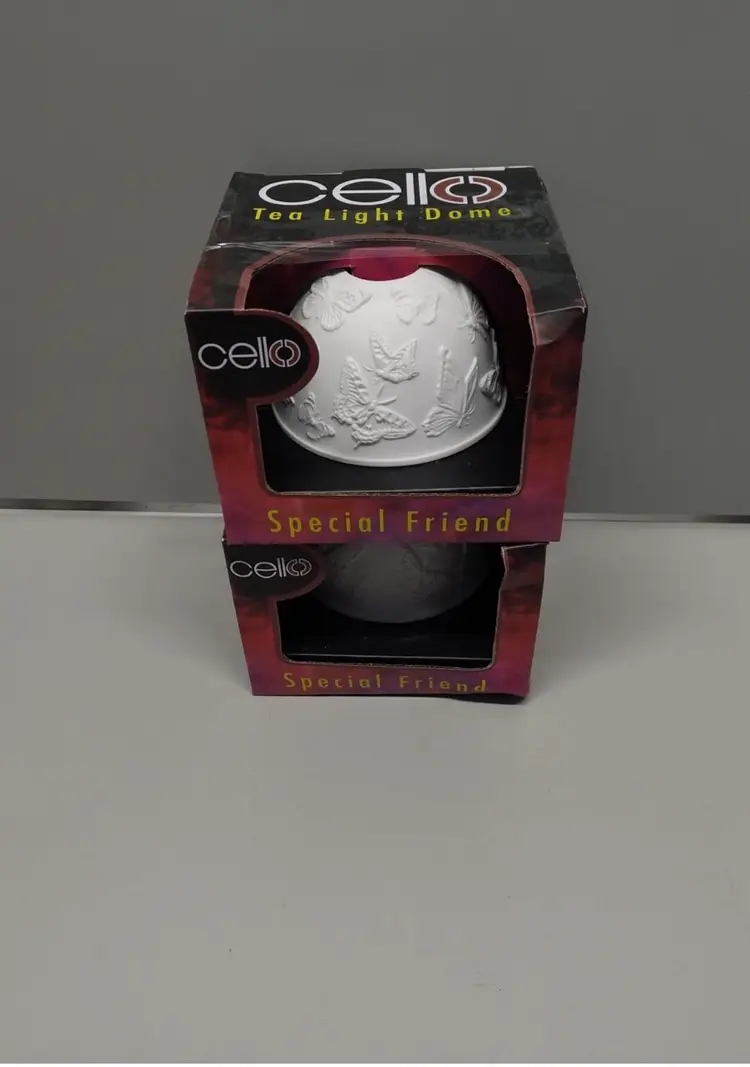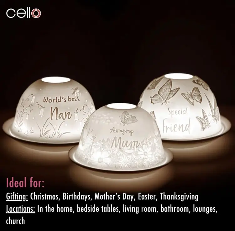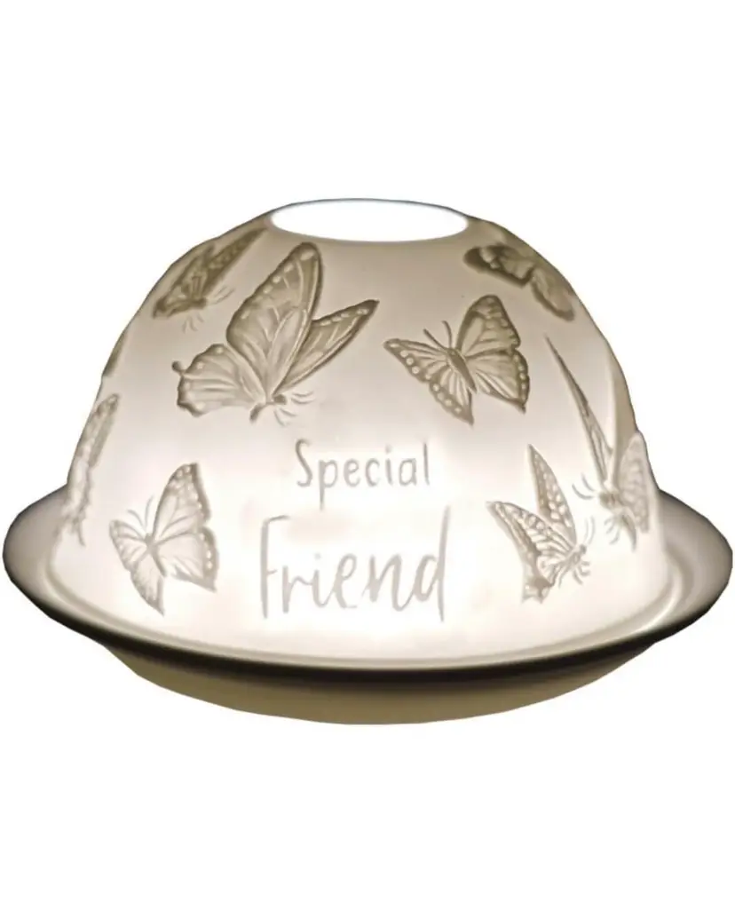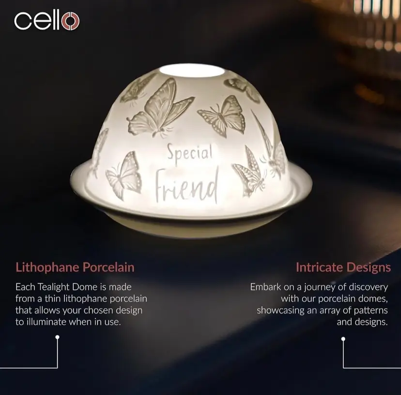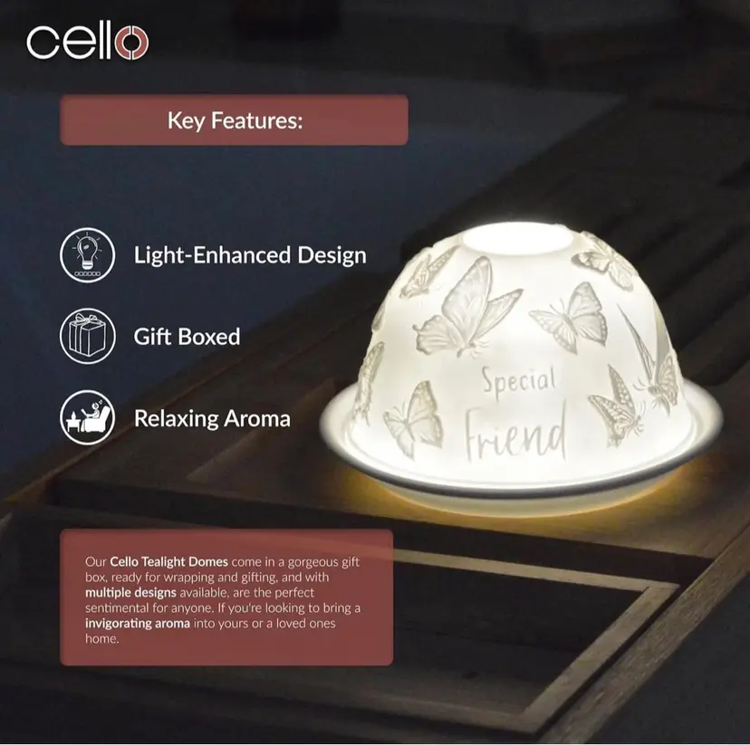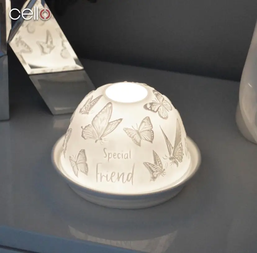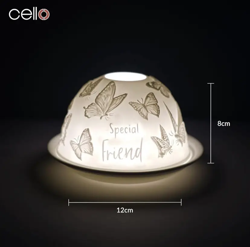 2 x Cello Porcelain Tealight Holder Dome - Special Friend Butterfly Design with 3D Projection & Loving Message for Scented Unscented Tealights & LED Candle Wax Warmer Mom Easter Women Gifts Ornament Home