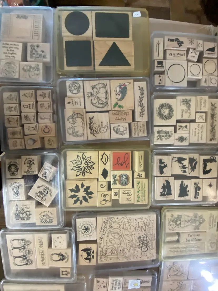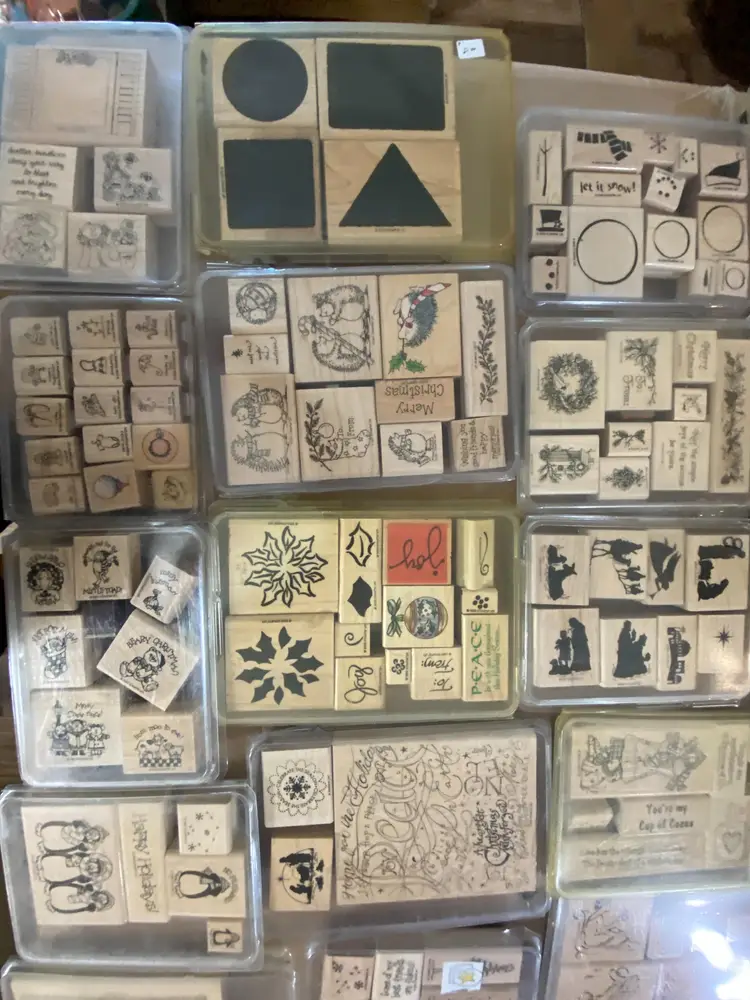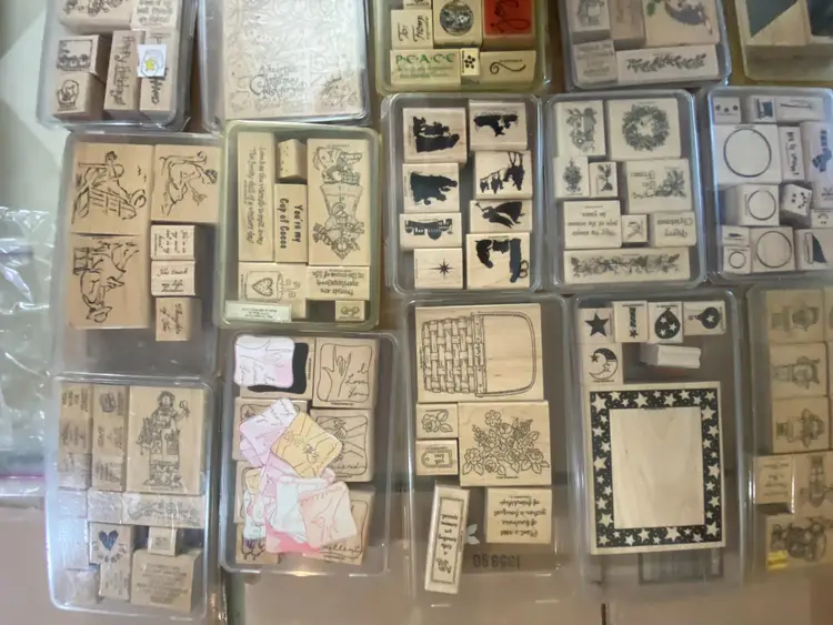 20 Stampin Up rubber stamp kits / packs each one has multi stamps in it. Wood handles mix of themes some have been used have some ink remaining on them I have numerous lots of these up if interested in more then one I can check on combined shipping. Thank you for looking. 18# 13x13x9