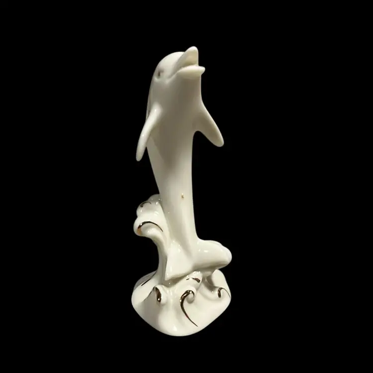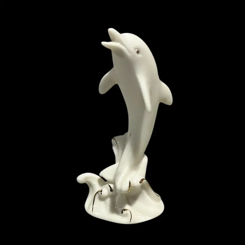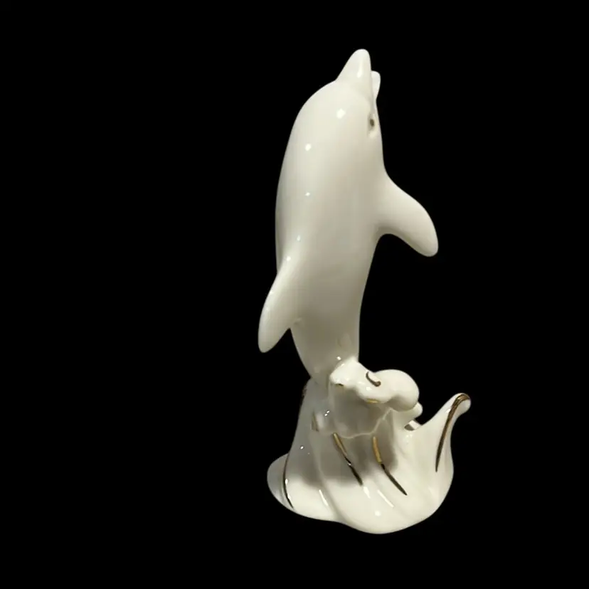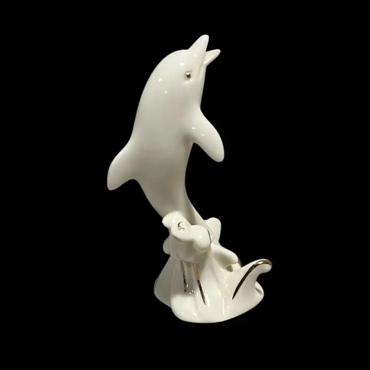 20. Vintage Lenox Dolphin Figurine 4 " Tall Porcelain Hand Painted Gold Trim