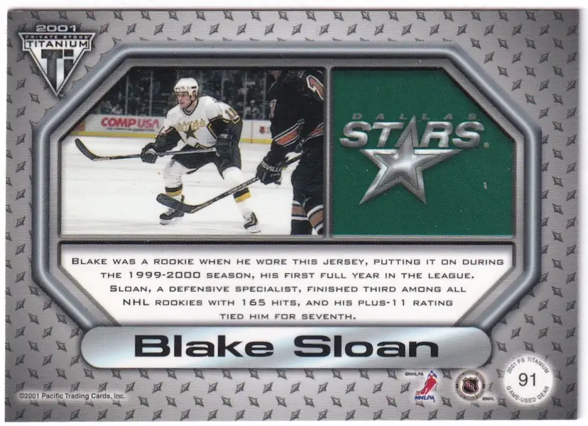 2000-01 Titanium Game Gear #91 Blake Sloan Dallas Stars