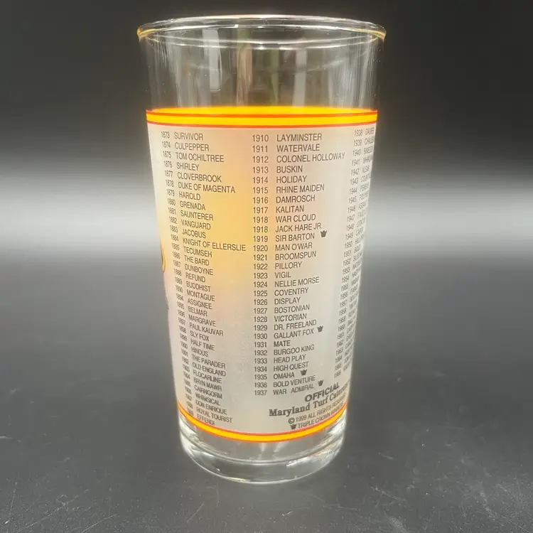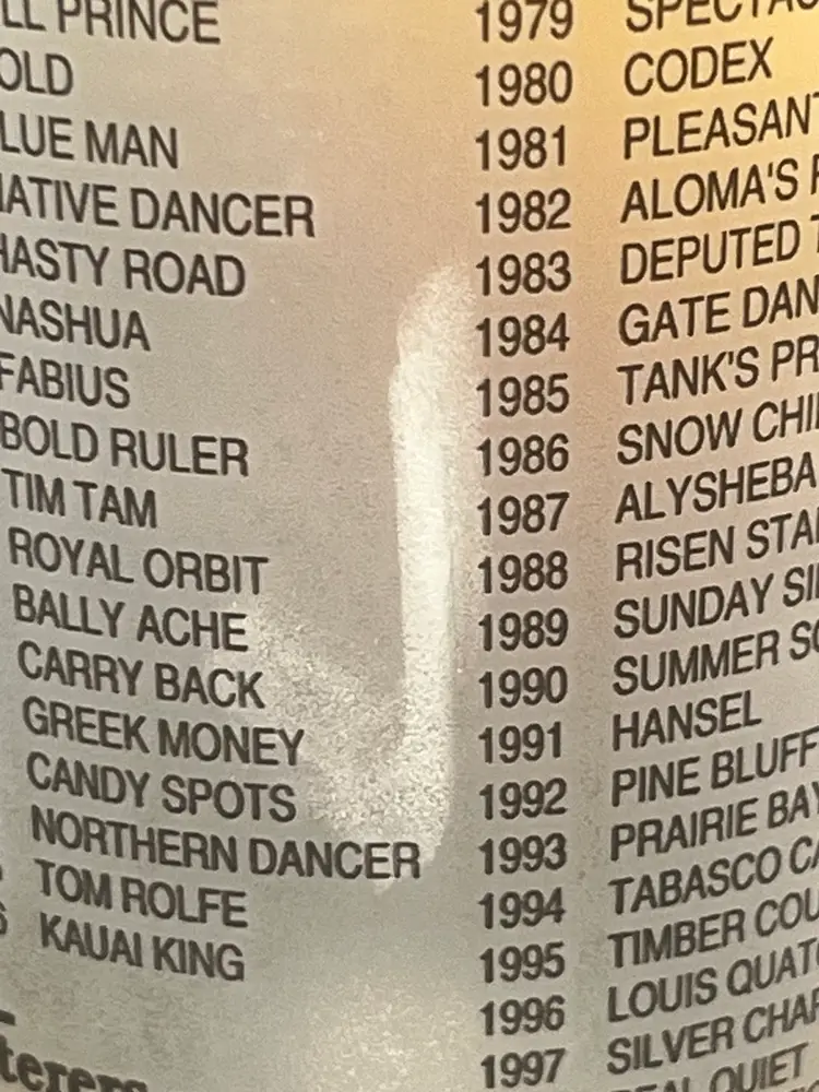 Has one scuff. Shown in close up picture. Otherwise, excellent. Back shows all winners as well as noting Triple Crown Winners.