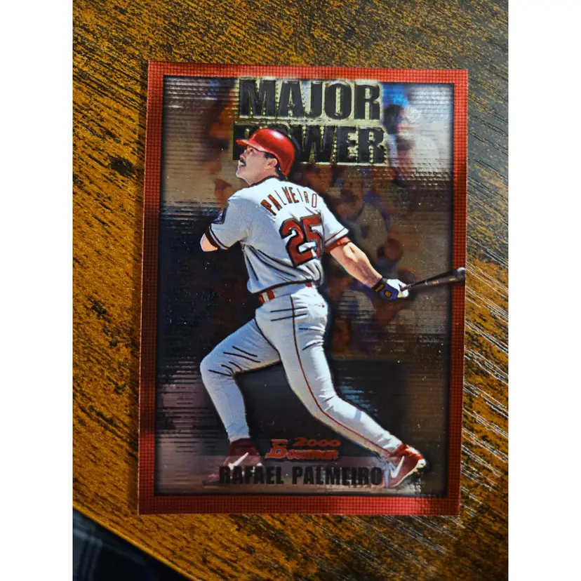 Check out this 2000 Bowman Major Power card featuring Rafael Palmeiro. A must-have for any baseball card collector.