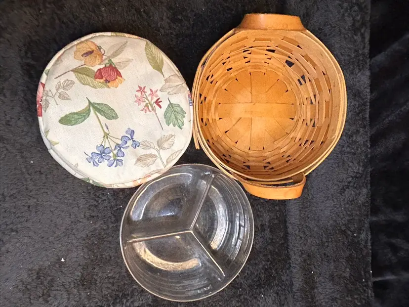 This specific set includes a fabric liner with a floral and butterfly motif and a clear plastic protector with a built-in 3-section divider.