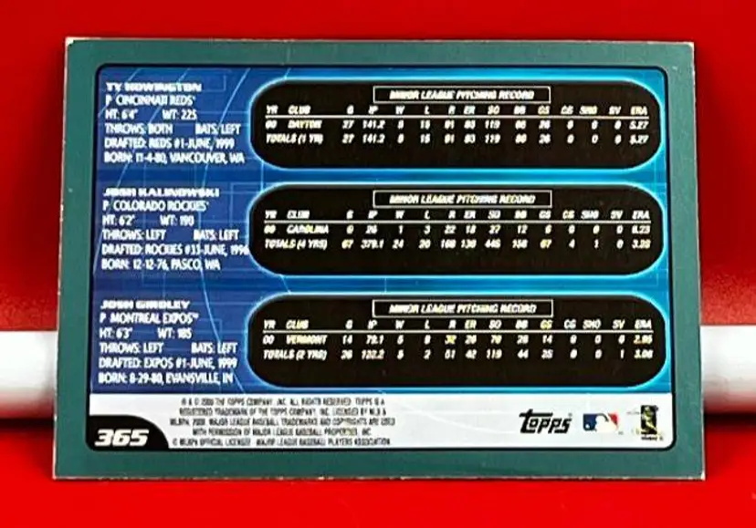 Hello, what we have is a Collector Trading Card by: Topps. Year: 2000. Player: Various. Number: 365. Team: Various.