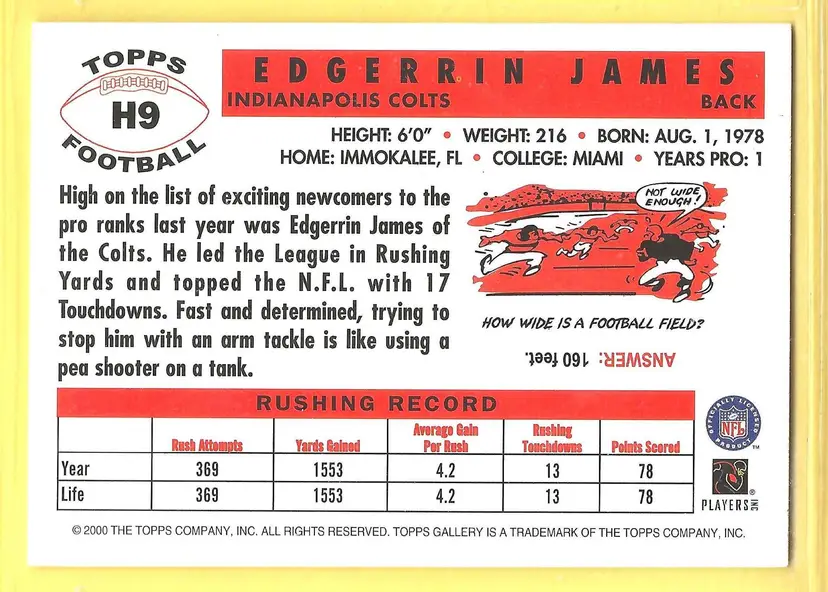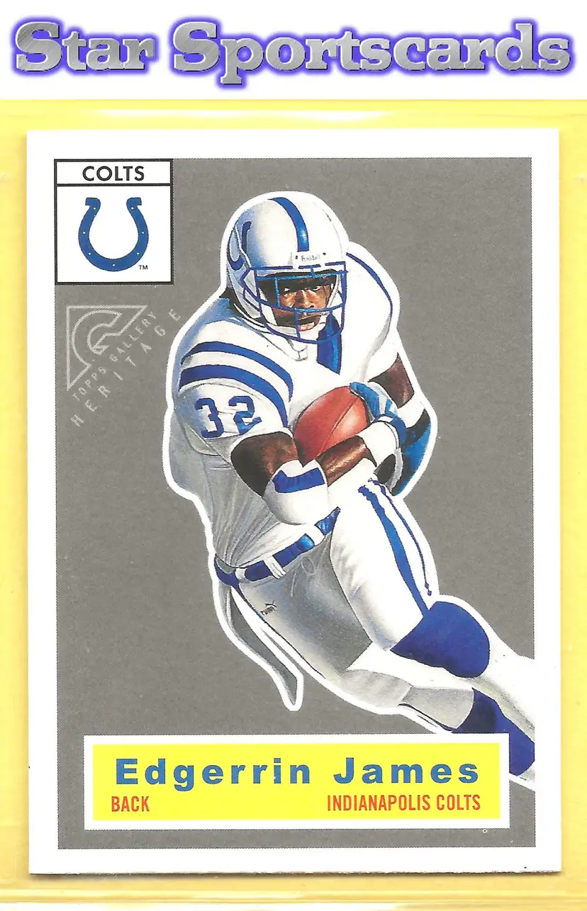 This is a nice example of a 2000 Topps Gallery #H9 Edgerrin James Heritage .Other important information about this card: In Edgerrin James played for the Indianapolis Colts.Please check out our other listings for more great cards.