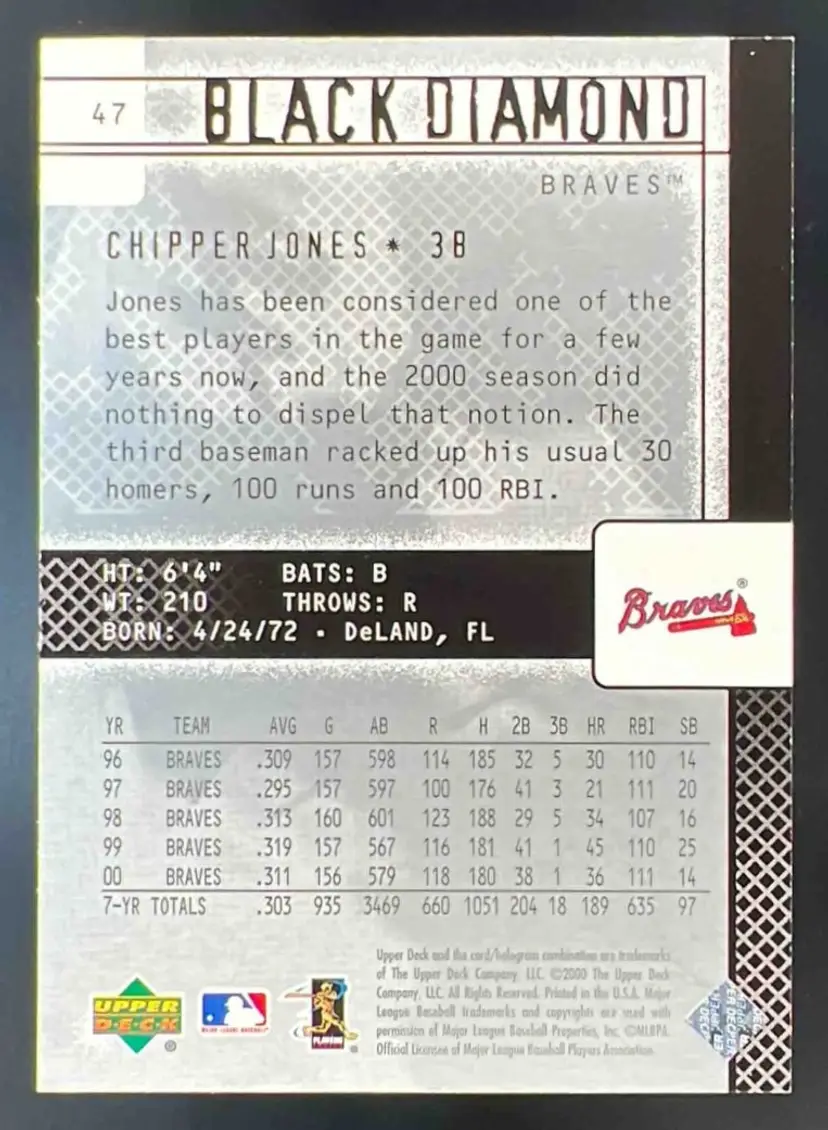 2000 Upper Deck Black Diamond Rookie Edition Chipper Jones Gold /1000 #47 Braves