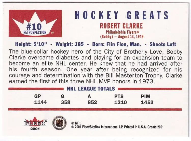 2001-02 Greats of the Game Retro Collection #10 Bobby Clarke Philadelphia Flyers