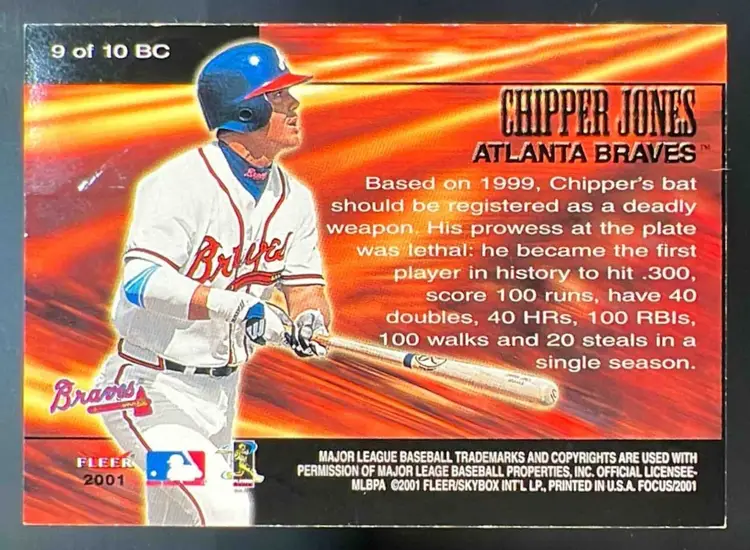 2001 Fleer Baseball Focus Chipper Jones Bat Company #9 BC Atlanta Braves