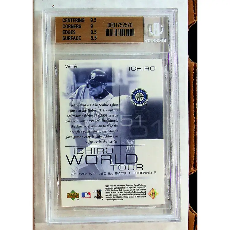 2001 Upper Deck Pros and Prospects Ichiro World Tour #WT9 I.Suzuki Metrodome BGS 9.5 (GEM MINT) - Cert#0001752570 Centering: 9.5 Corners: 9 Edges: 9.5 Surface: 9.5