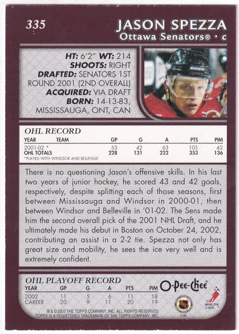 2002-03 O-Pee-Chee #335 Jason Spezza RC Ottawa Senators
