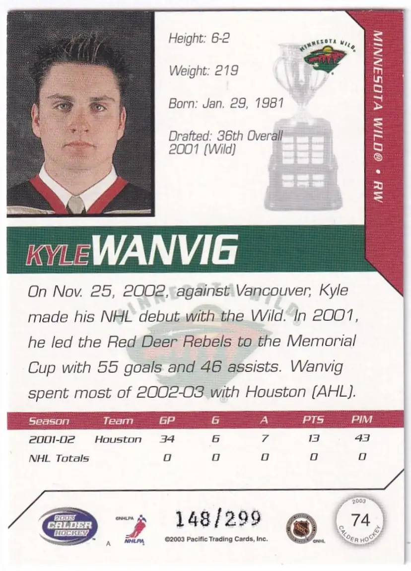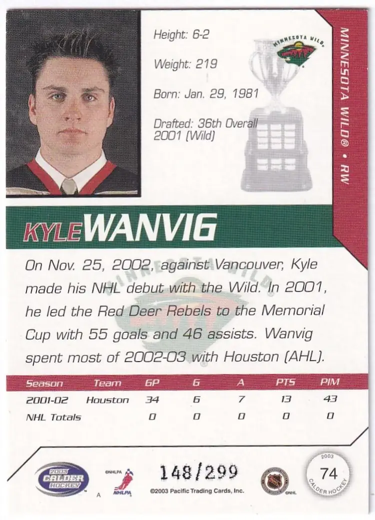 2002-03 Pacific Calder Silver #74 Kyle Wanvig Minnesota Wild Print Run - 299