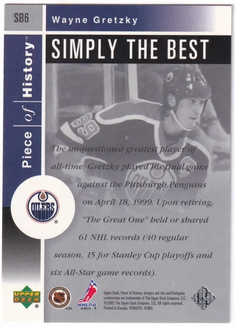 2002-03 UD Piece of History Simply the Best #SB6 Wayne Gretzky Edmonton Oilers